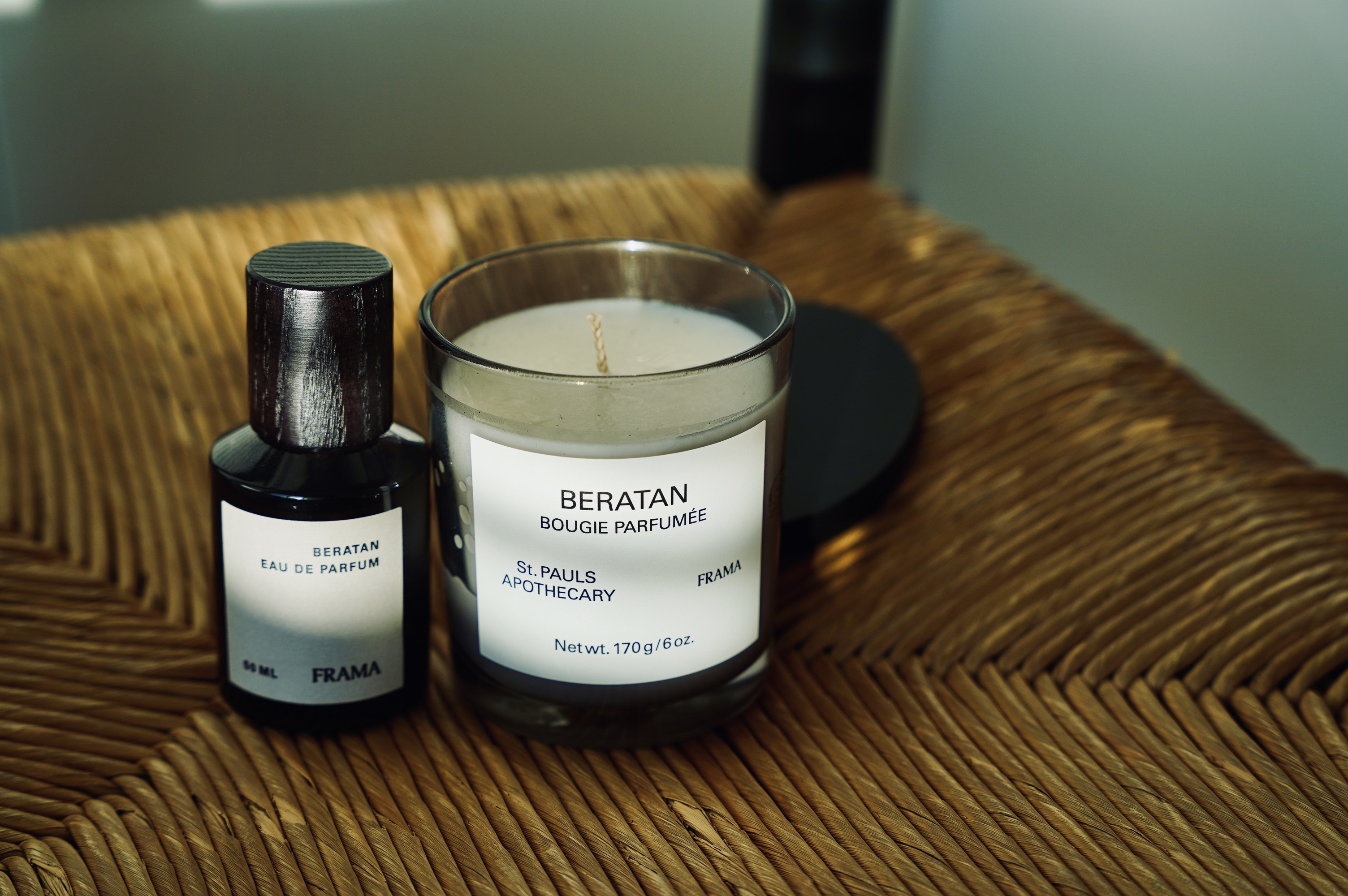 歴史あるウッドパネルに囲まれたクラシカルな設えにインスパイアされた、レモングラス、シダーウッド、サンダルウッドの素朴で深みのある調香は、独特のフレッシュさがあり、過去と現在がシームレスに絡み合う FRAMA の世界観にリンクしています。