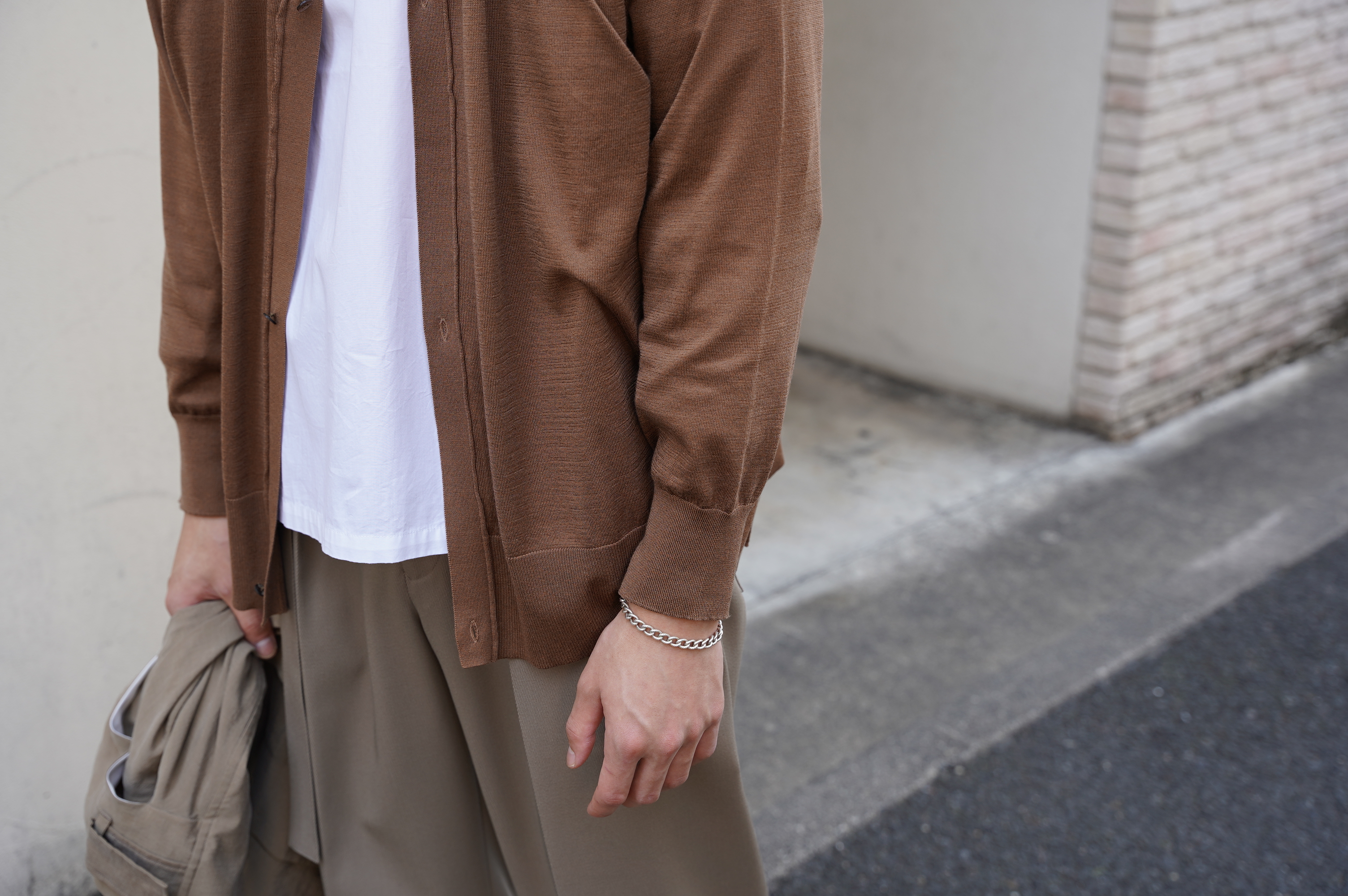 程よくゆとりを持たせる事でリラックスしたムードが漂うカーディガン。
