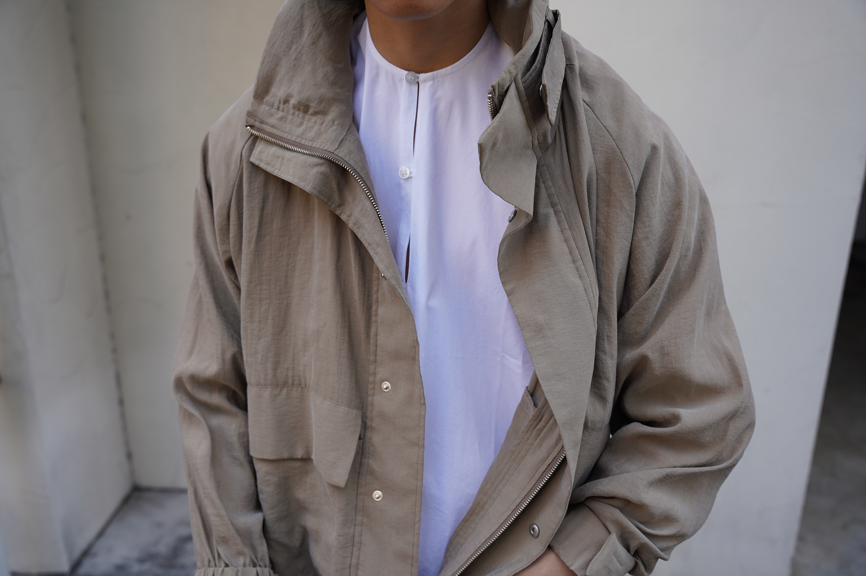 収納可能なフードが襟にあしらわれています。