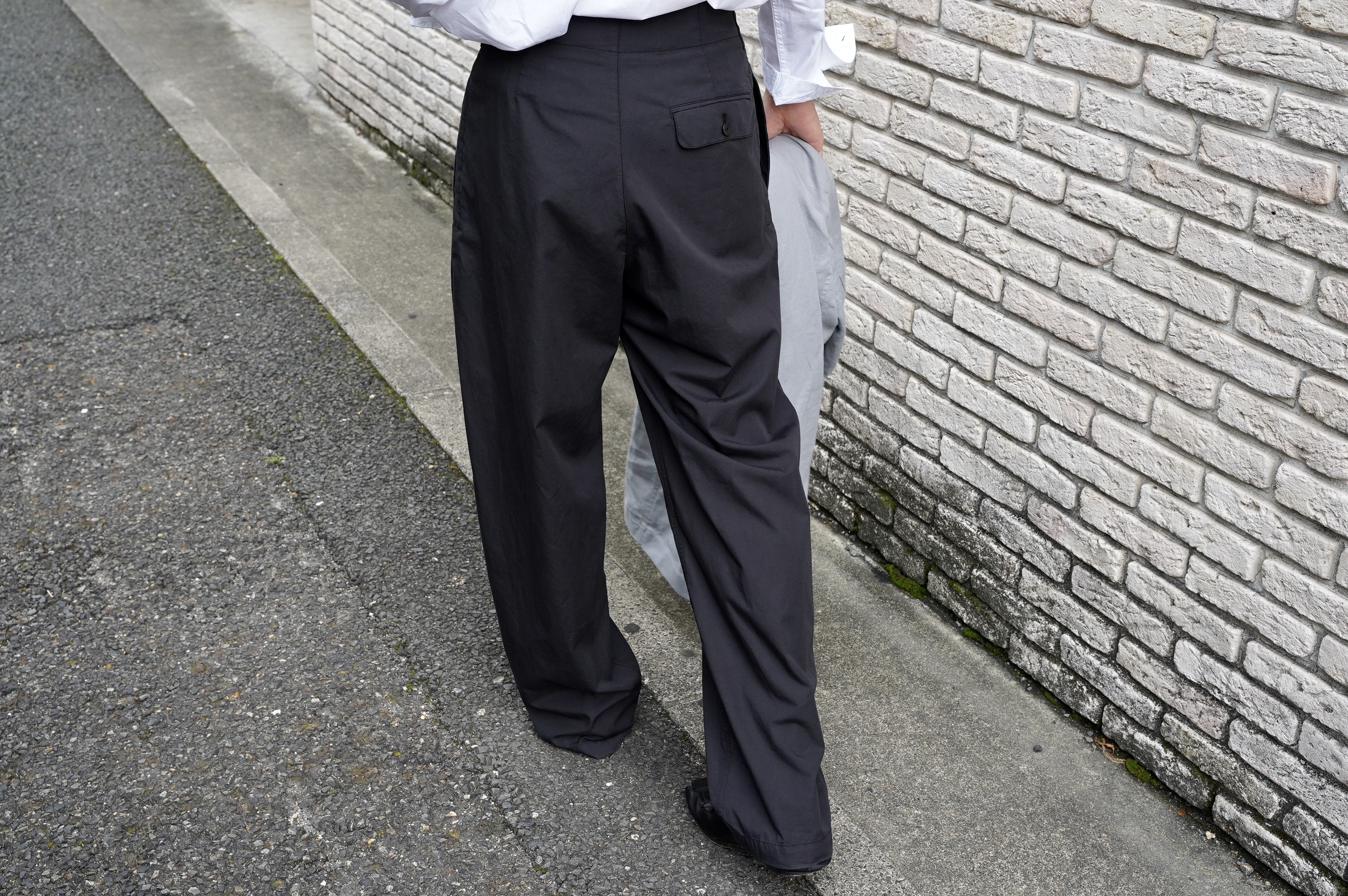 軽く、柔らかなコットンポプリン生地を使用する事でドライタッチに仕上げたパンツ。