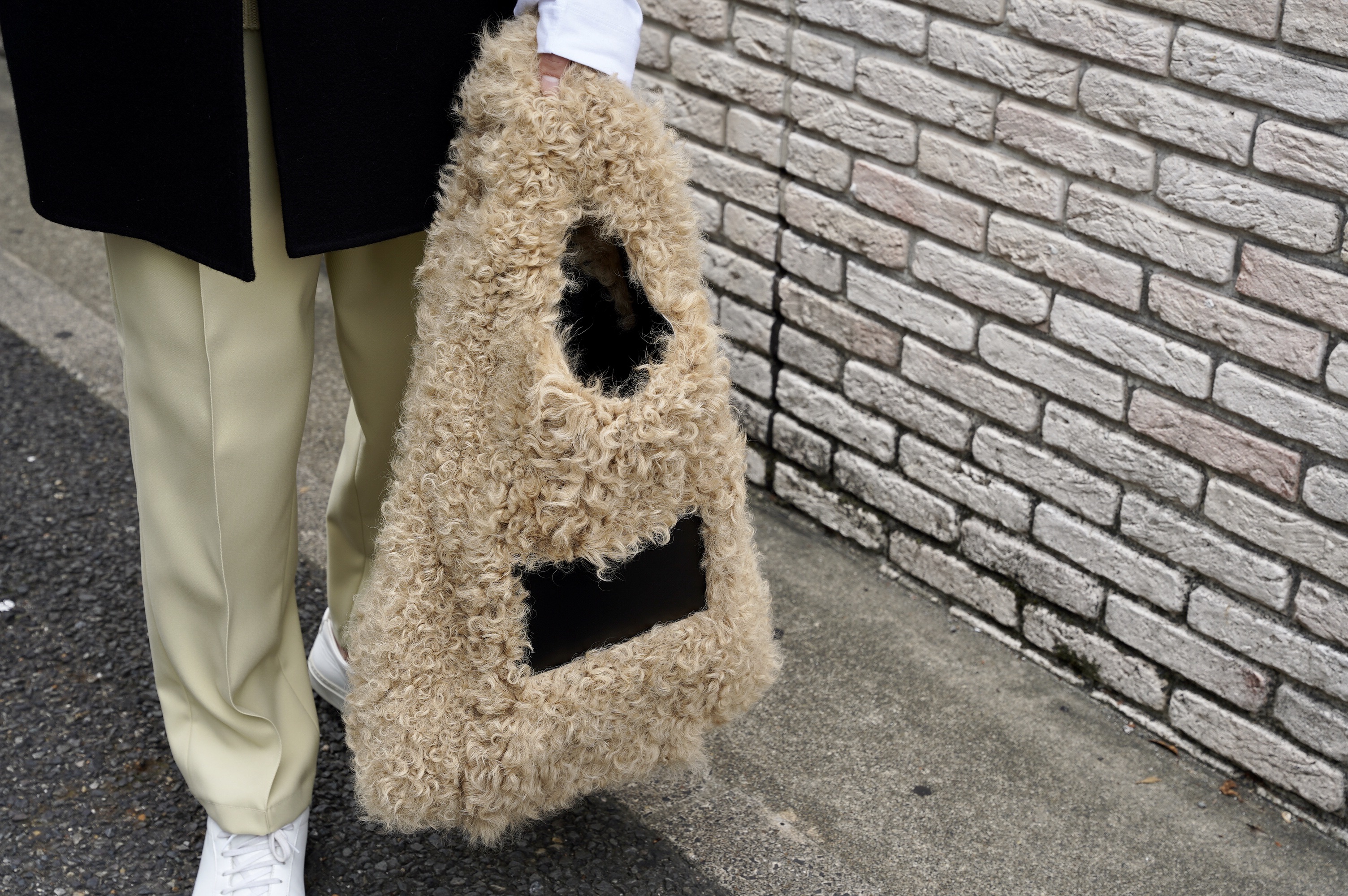 表側にはウールシープスキンがあしらわれており、唯一無二の存在感を持ちます。