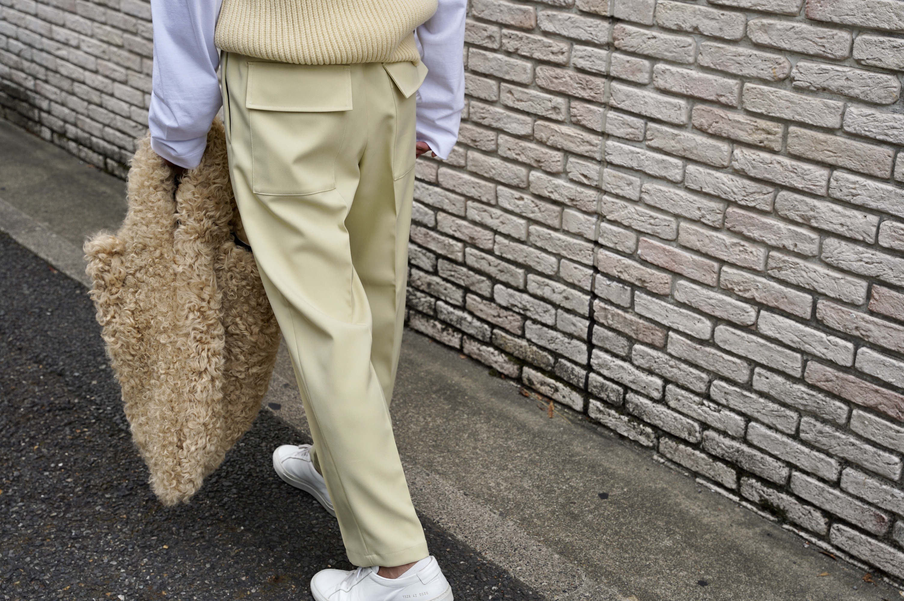 張りのあるウールを活かしたシャープなテーパードシルエット。