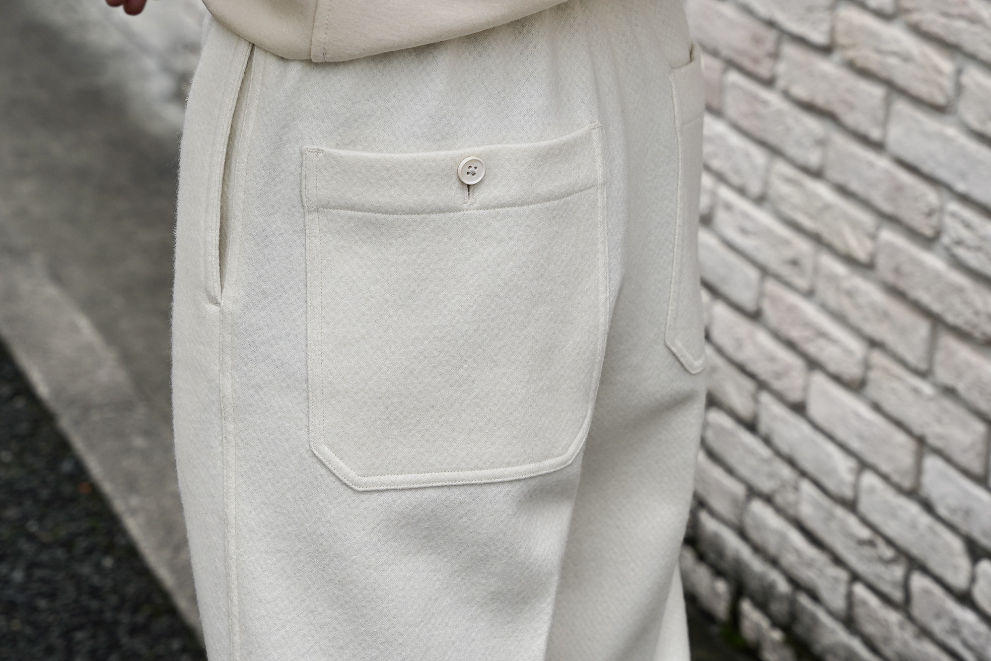 Super120のヘビーインレー縮絨メルトン素材を使用したイージースラックス。