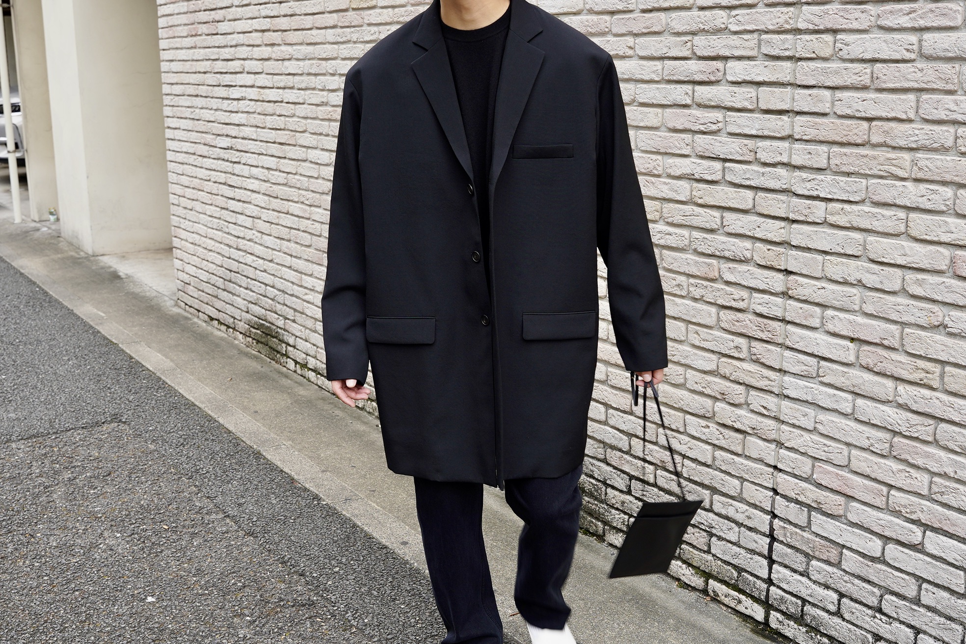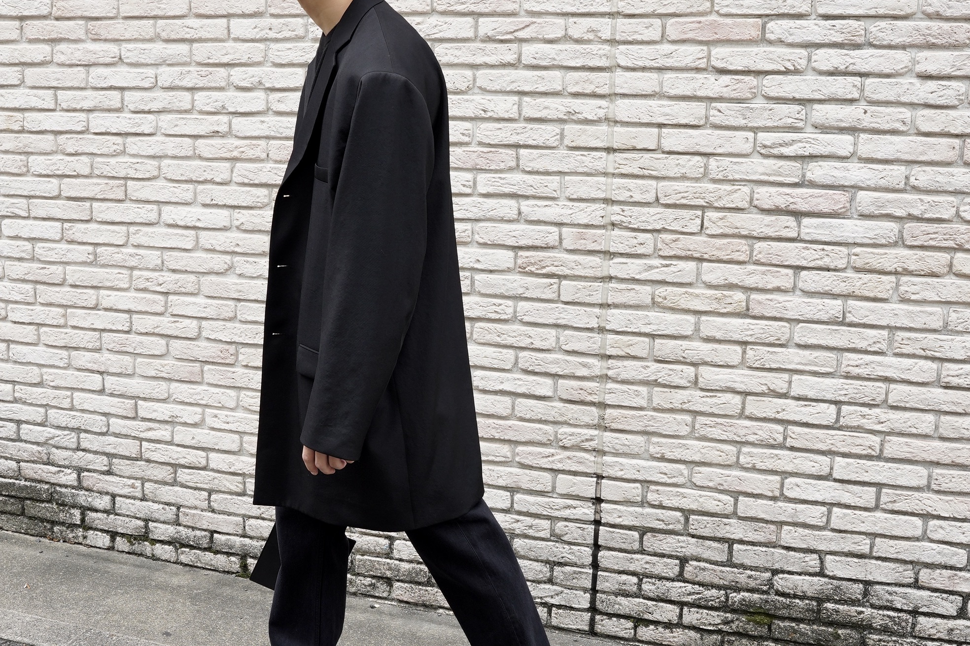 ショルダーにゆとりを持たせたボックスシルエットのジャケットコート。