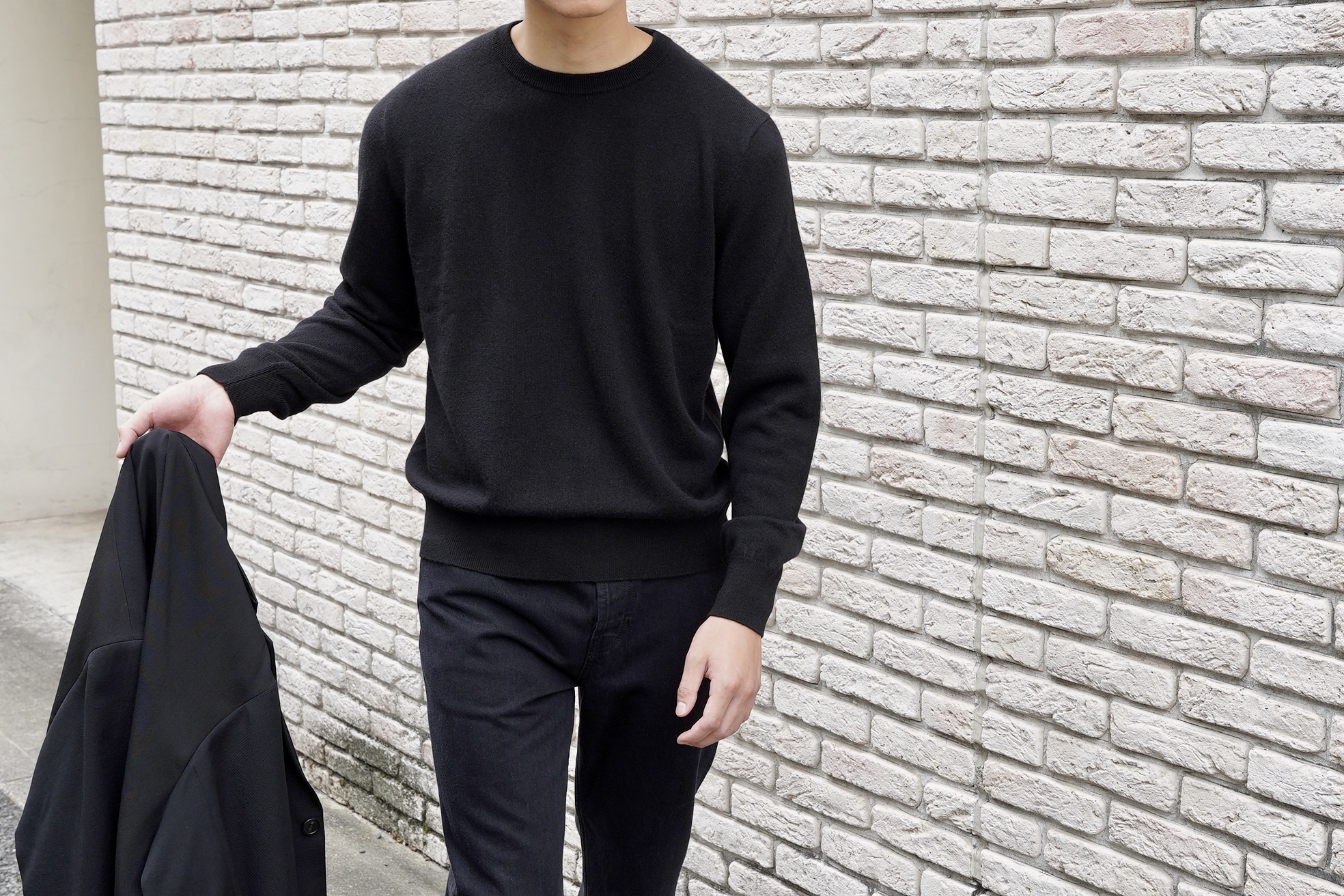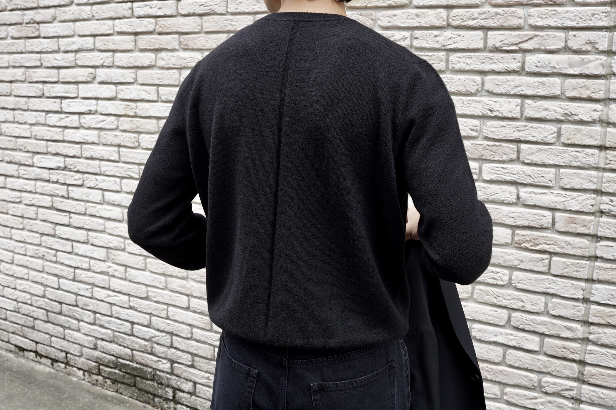 ネックライン、袖口、裾のリブ編み、シグネチャーのセンターバックディテール。