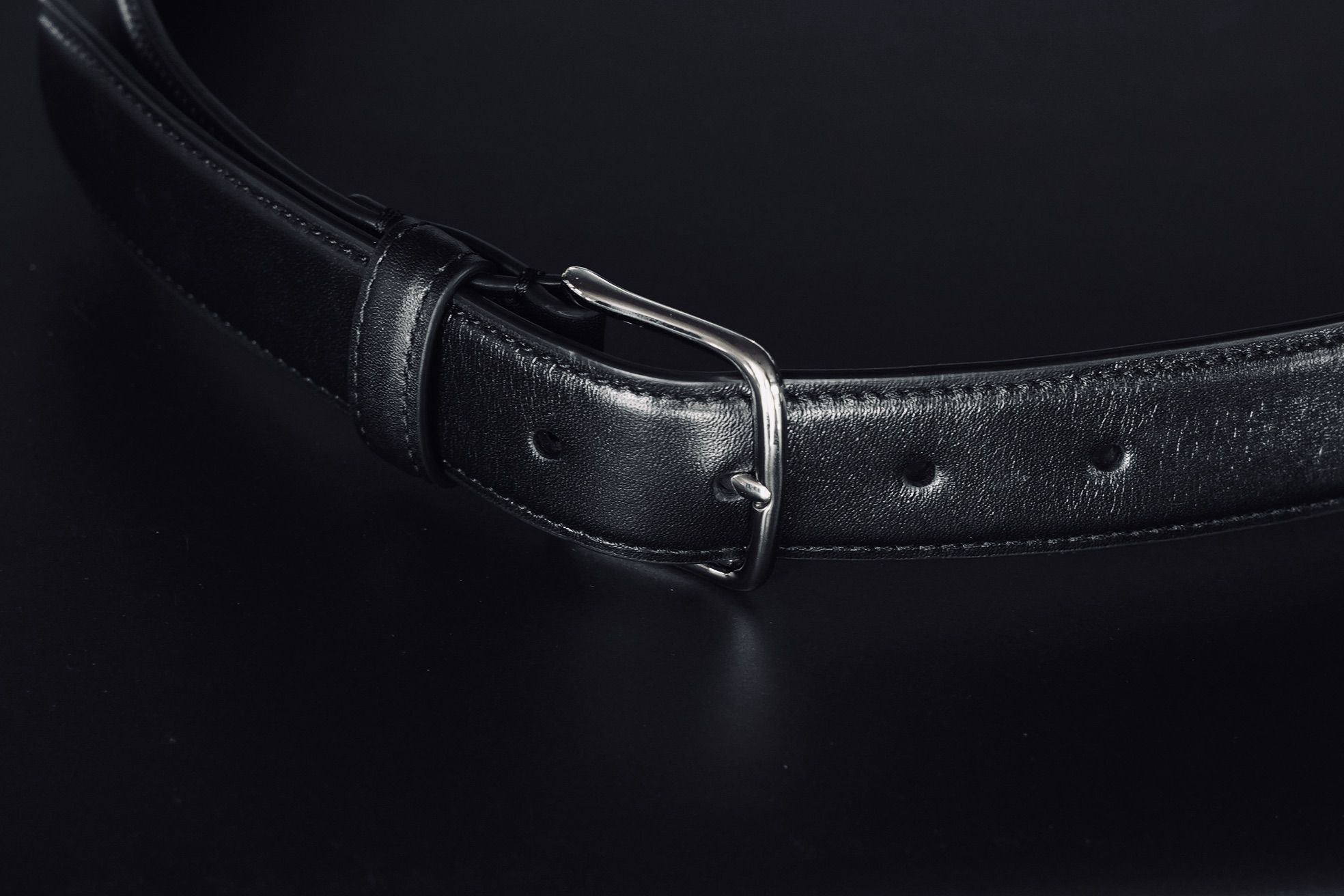 メタルバックルと固定ループのみのミニマルなデザインです。