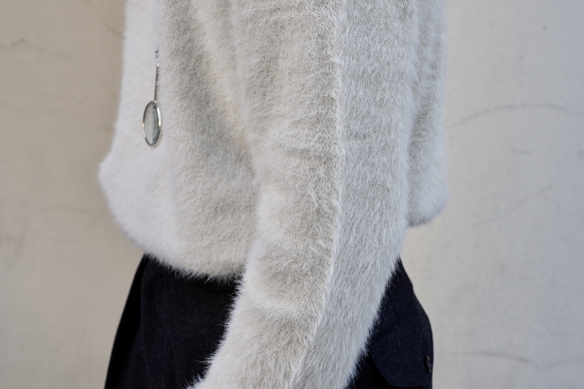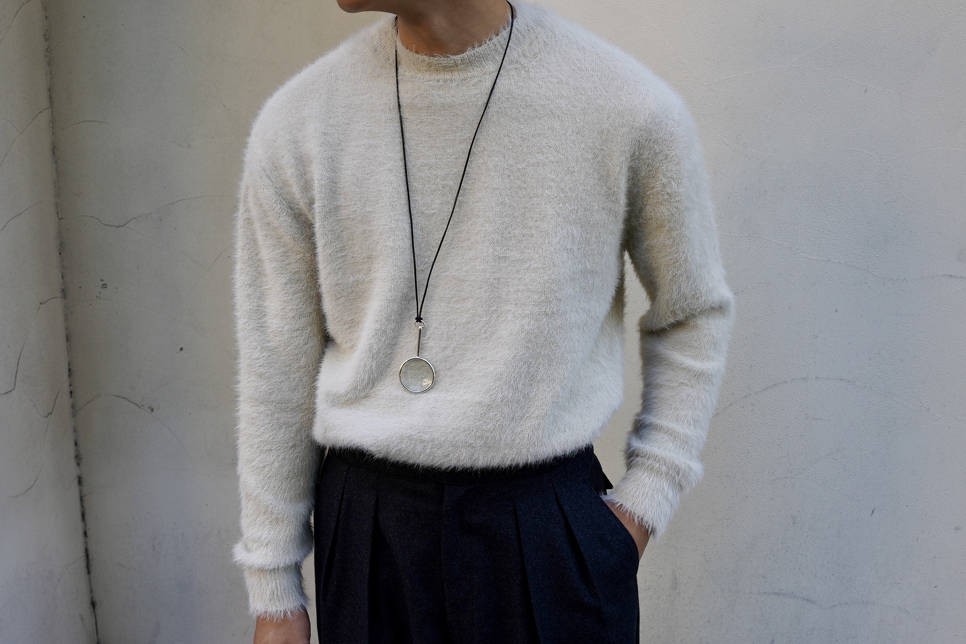 ふわりとしたモヘア仕様のクルーネックニット。