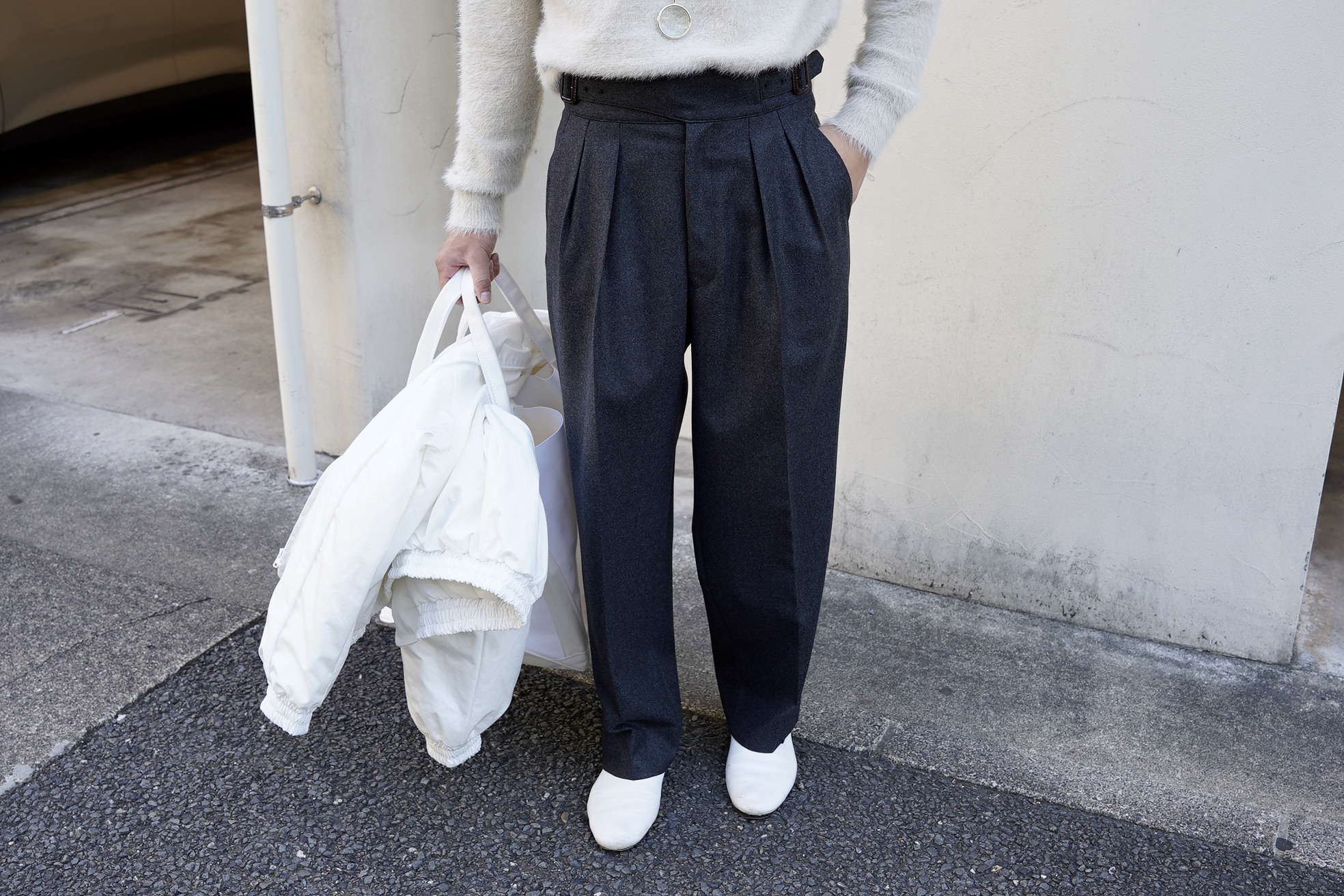 柔らかな質感を活かしたリラックスシルエット。