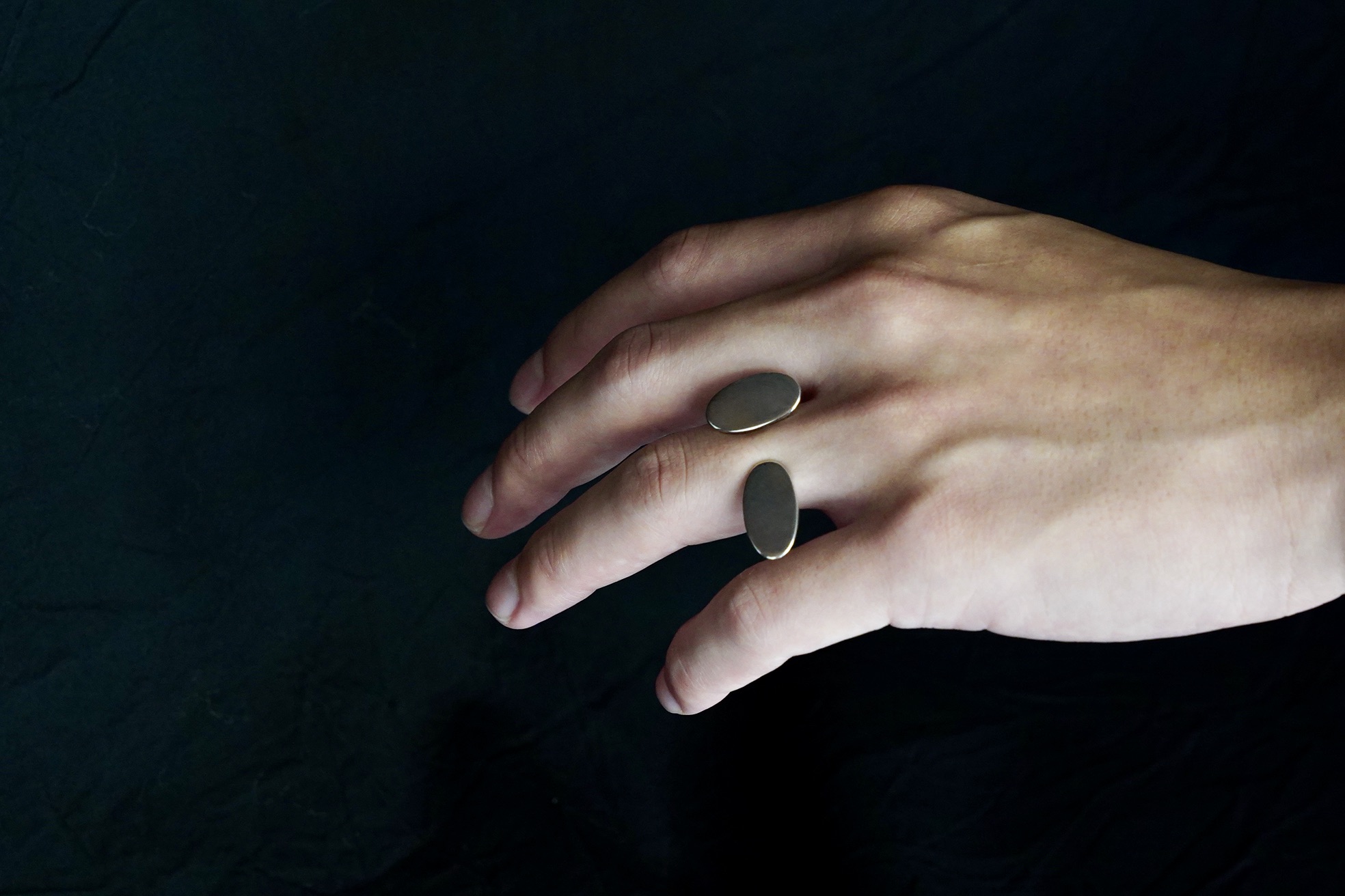 有機的な二つの楕円形をアクセントとしたオープンリング。