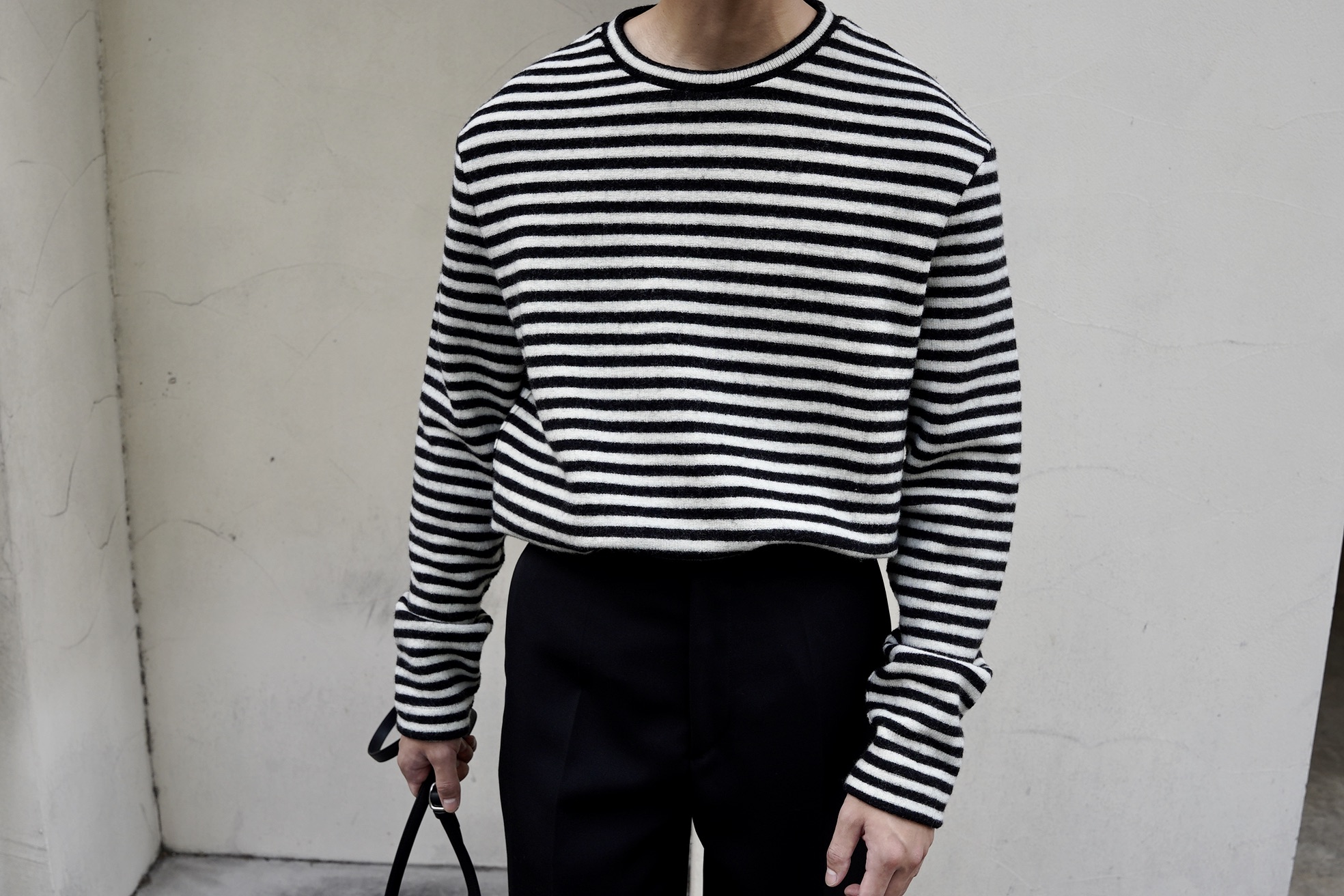 トラディショナルなボーダーニットをハイエンドに仕上げています。