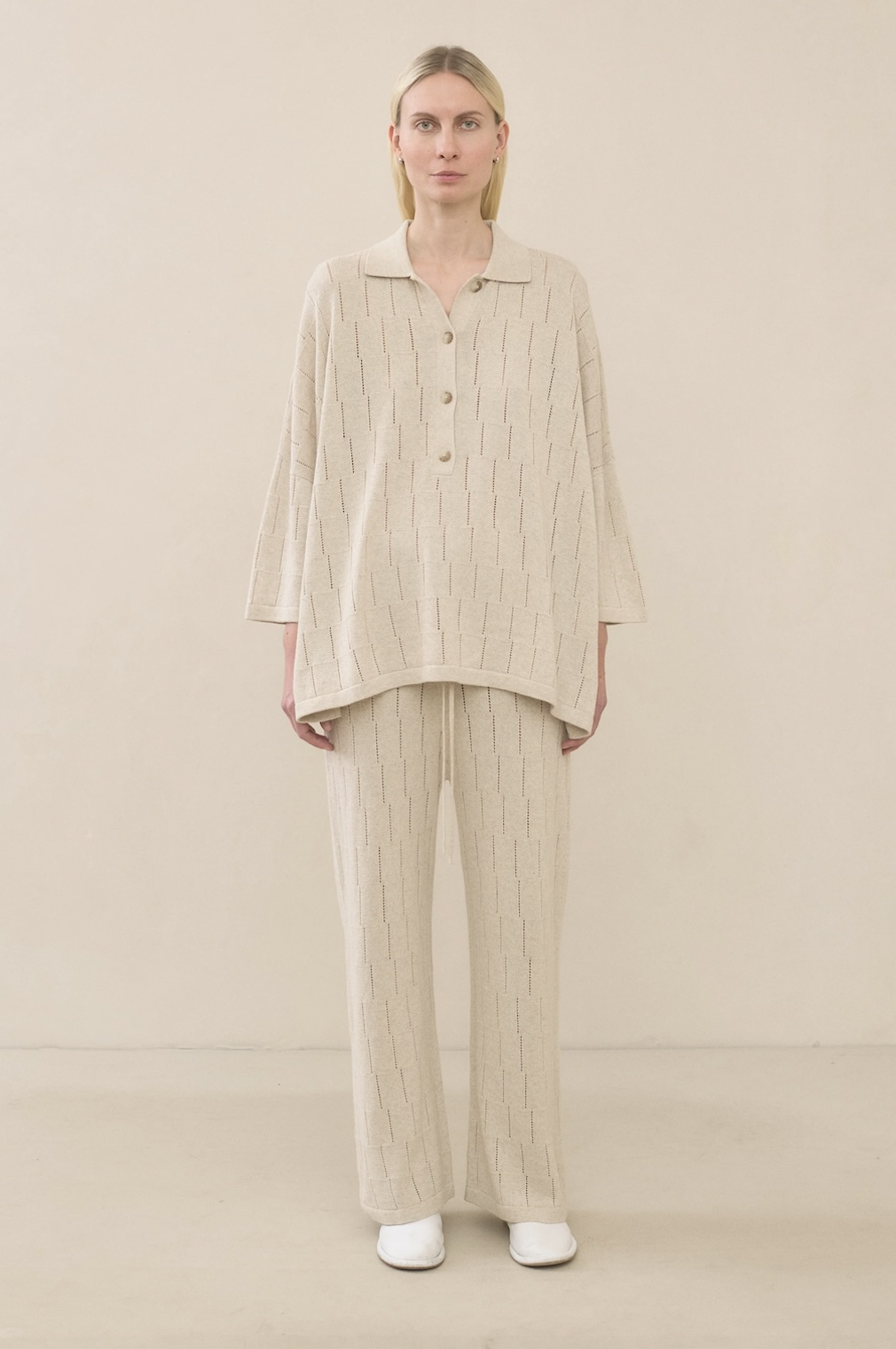 ドライタッチのピマコットンとリネン混紡で製作されたニットパンツ。