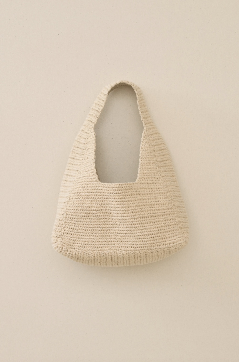 手作業のかぎ編み針で形成されたワンショルダーバッグ。