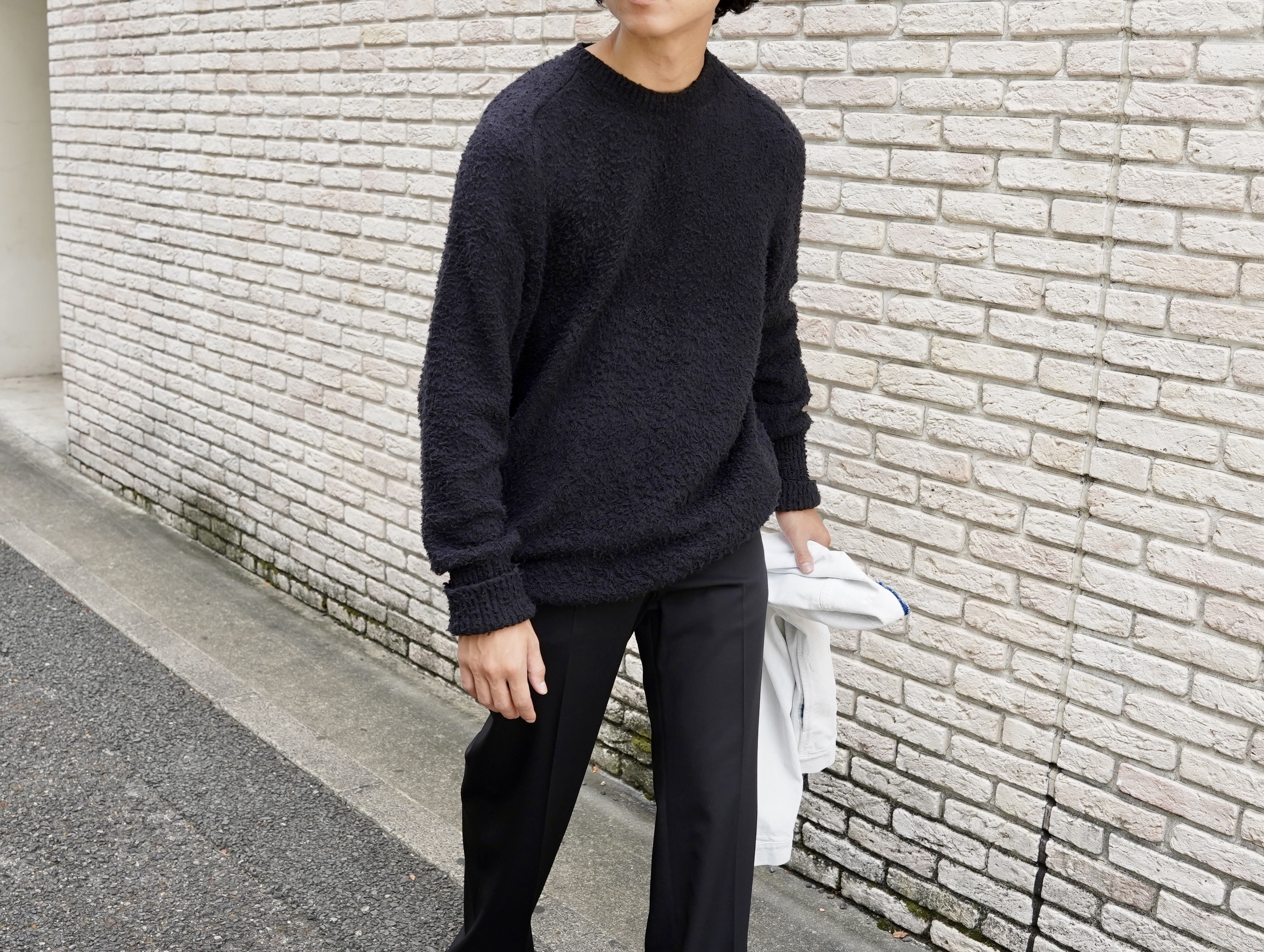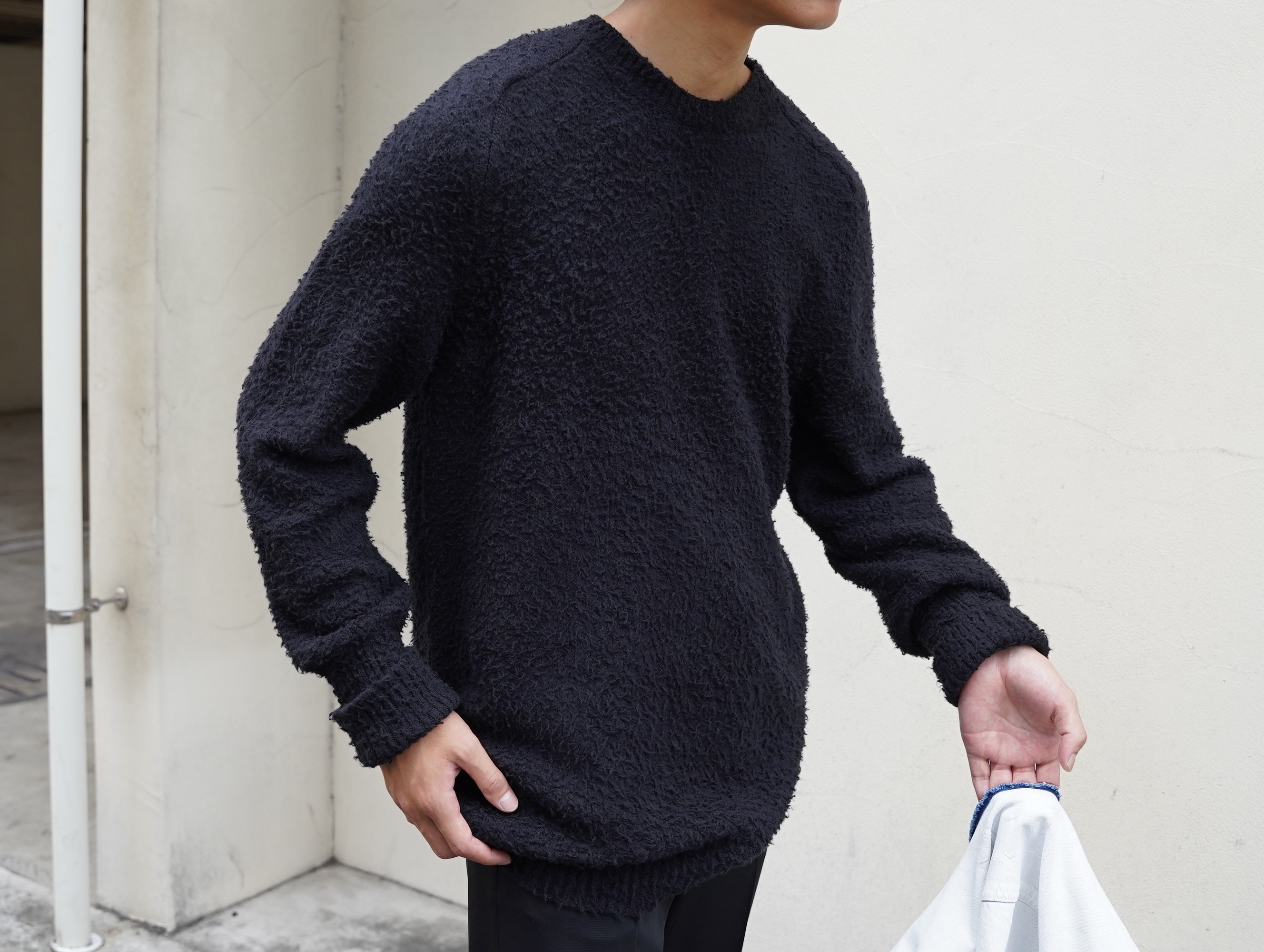 ナッピング加工が施されたオーバーサイズニット。