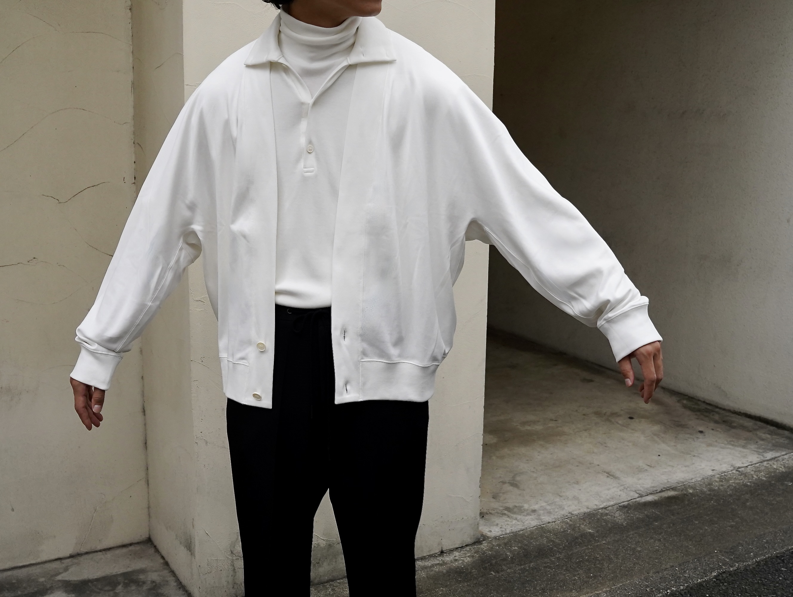 カットソー生地で製作する事で様々な気温での着用が可能に。