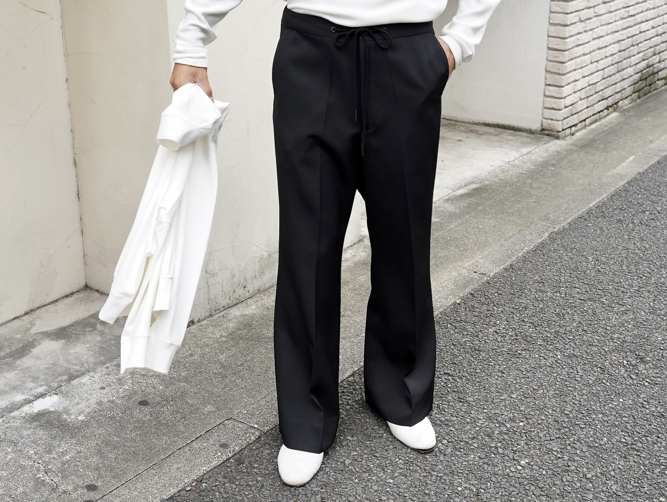 立体の表現力に優れたメリノウールのギャバジン素材を使用したフレアスラックス。