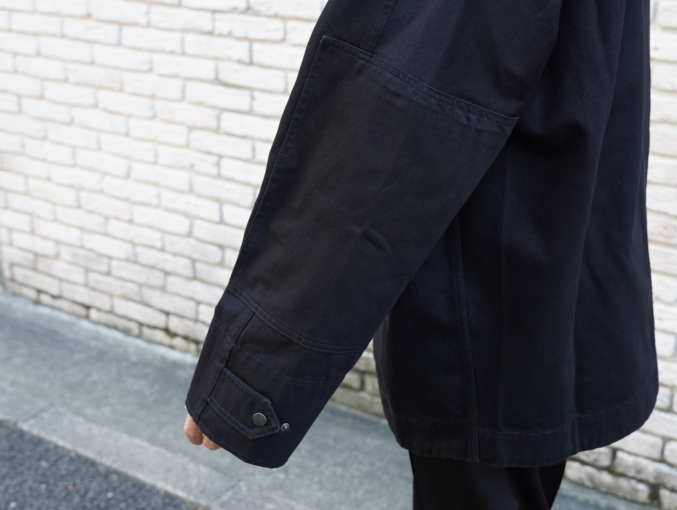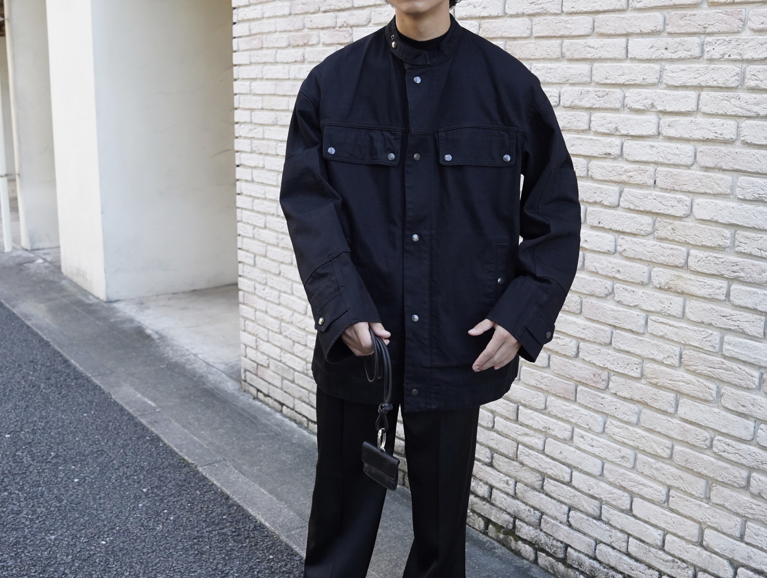 スタンドカラーからIラインに落ちるオーバーシルエットが特徴的なデニムジャケット。