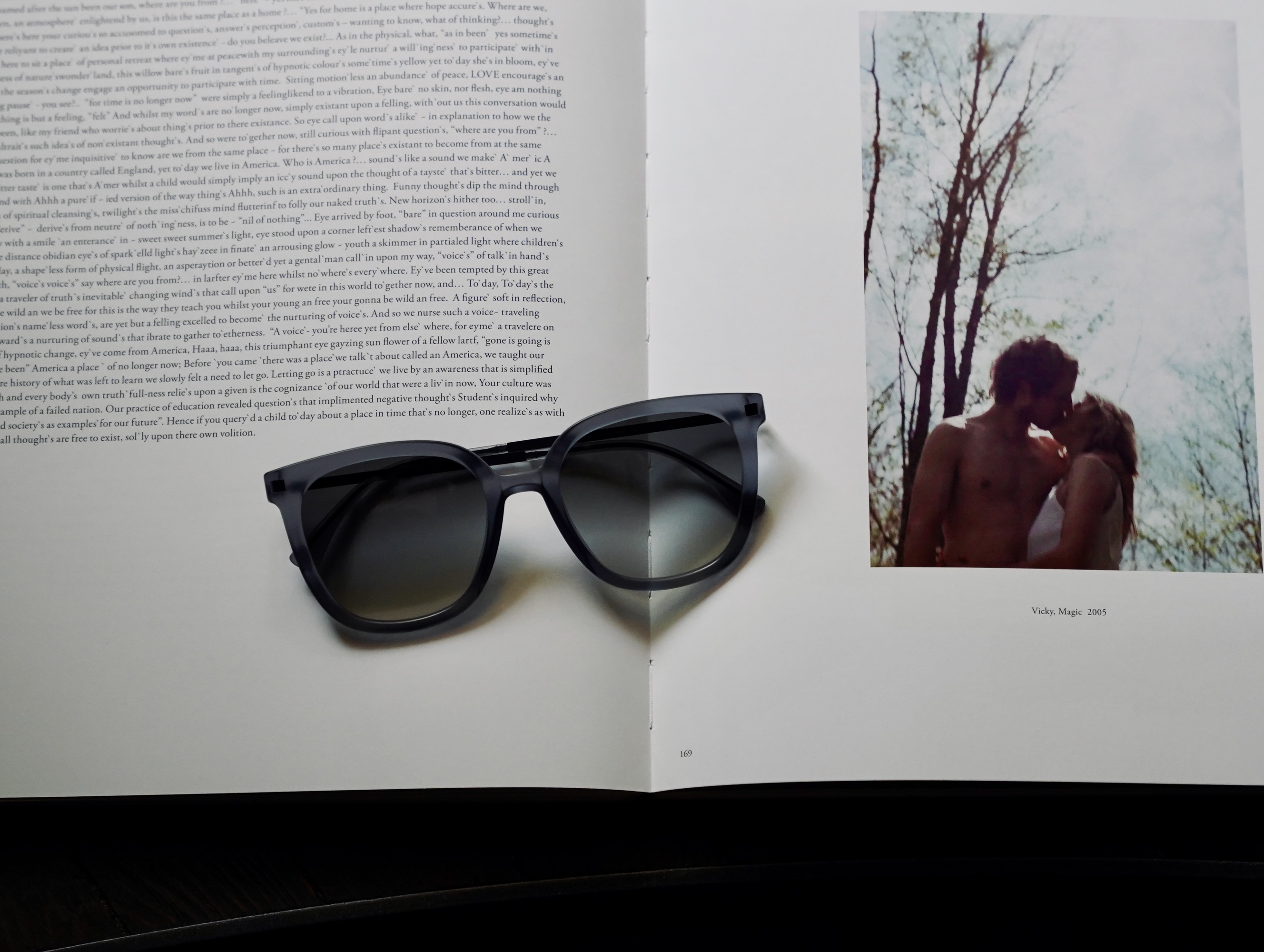グレーグラデーションのレンズが80〜90年代のヴィンテージサングラスのムードを醸し出します。
