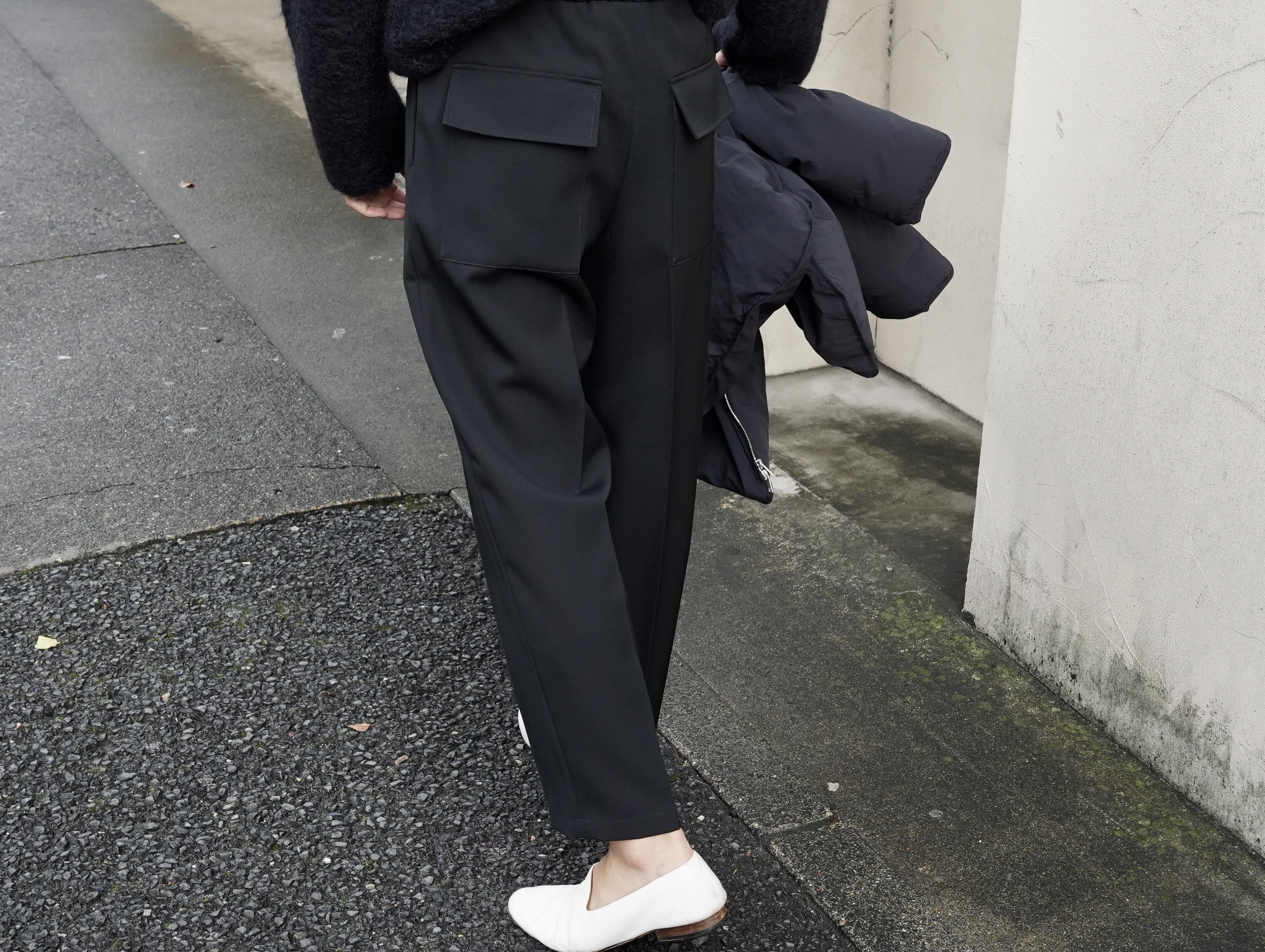 張りのあるウールを活かしたシャープなテーパードシルエット。