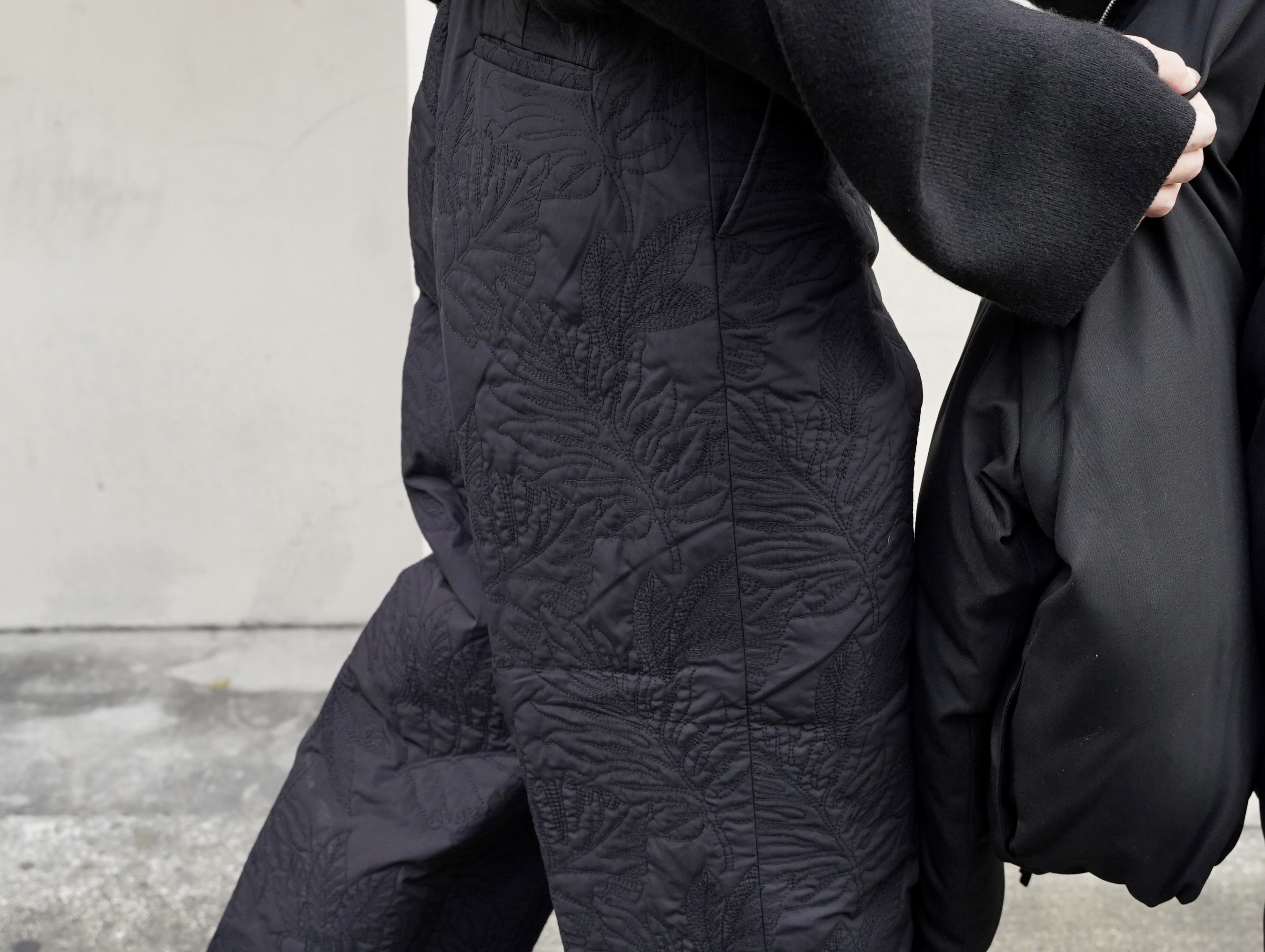 大胆な刺繍は同系色であしらう事で、幅広いスタイルに取り入れて頂けます。