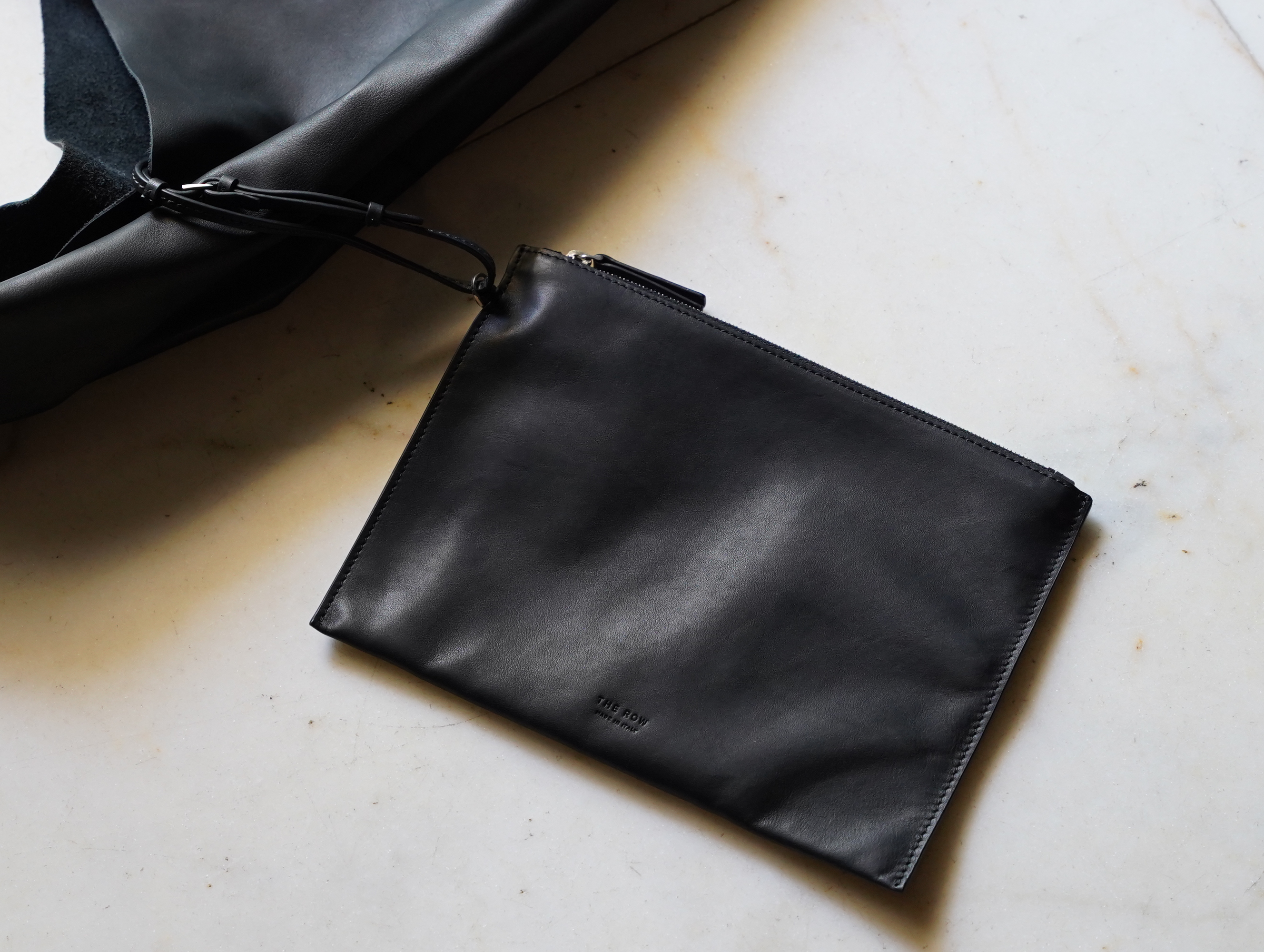 ZIP開閉のミニマルなポーチが付属しています。イタリア製。
