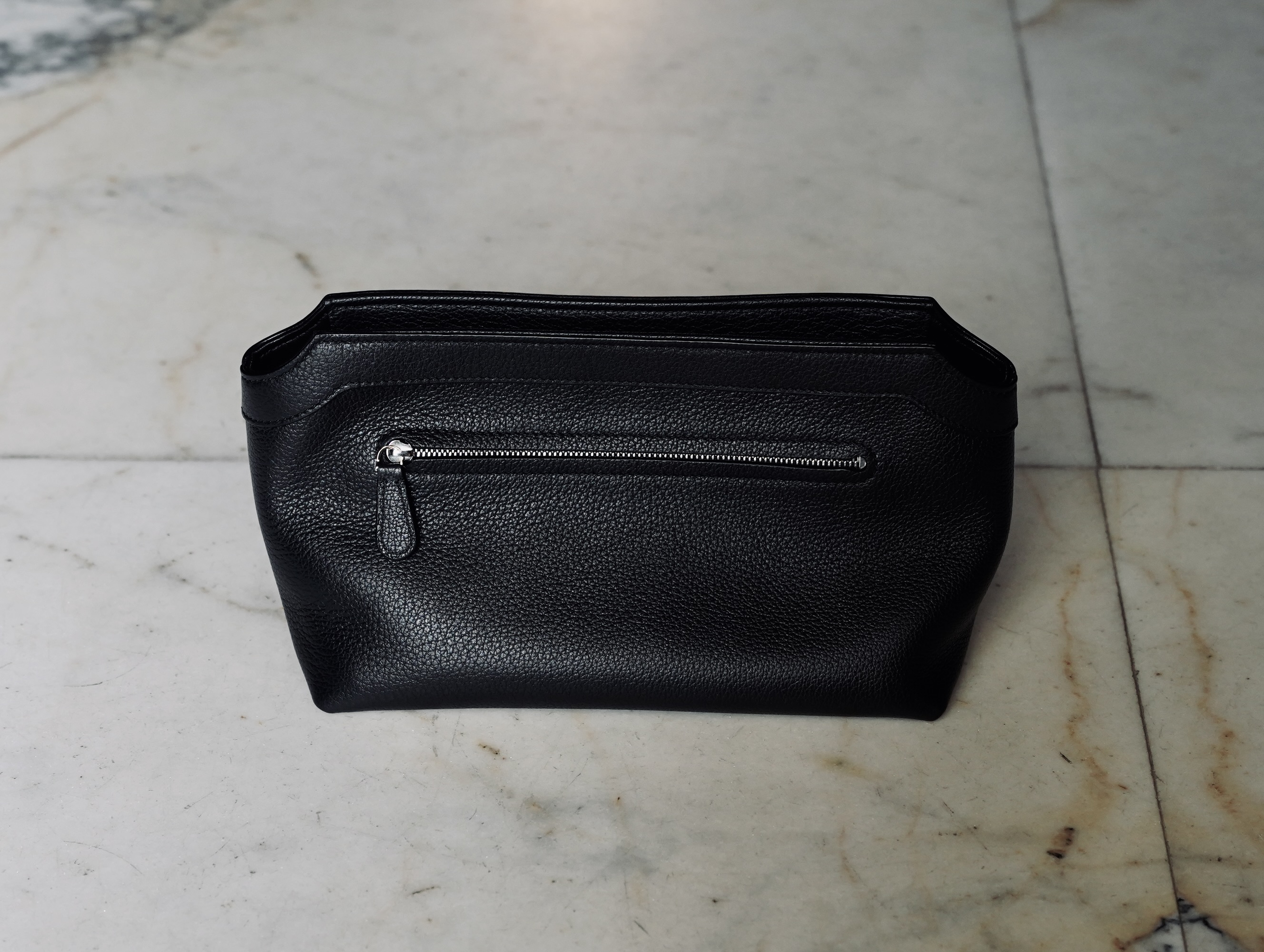 柔らかく上質なグレインレザー製ポーチ。