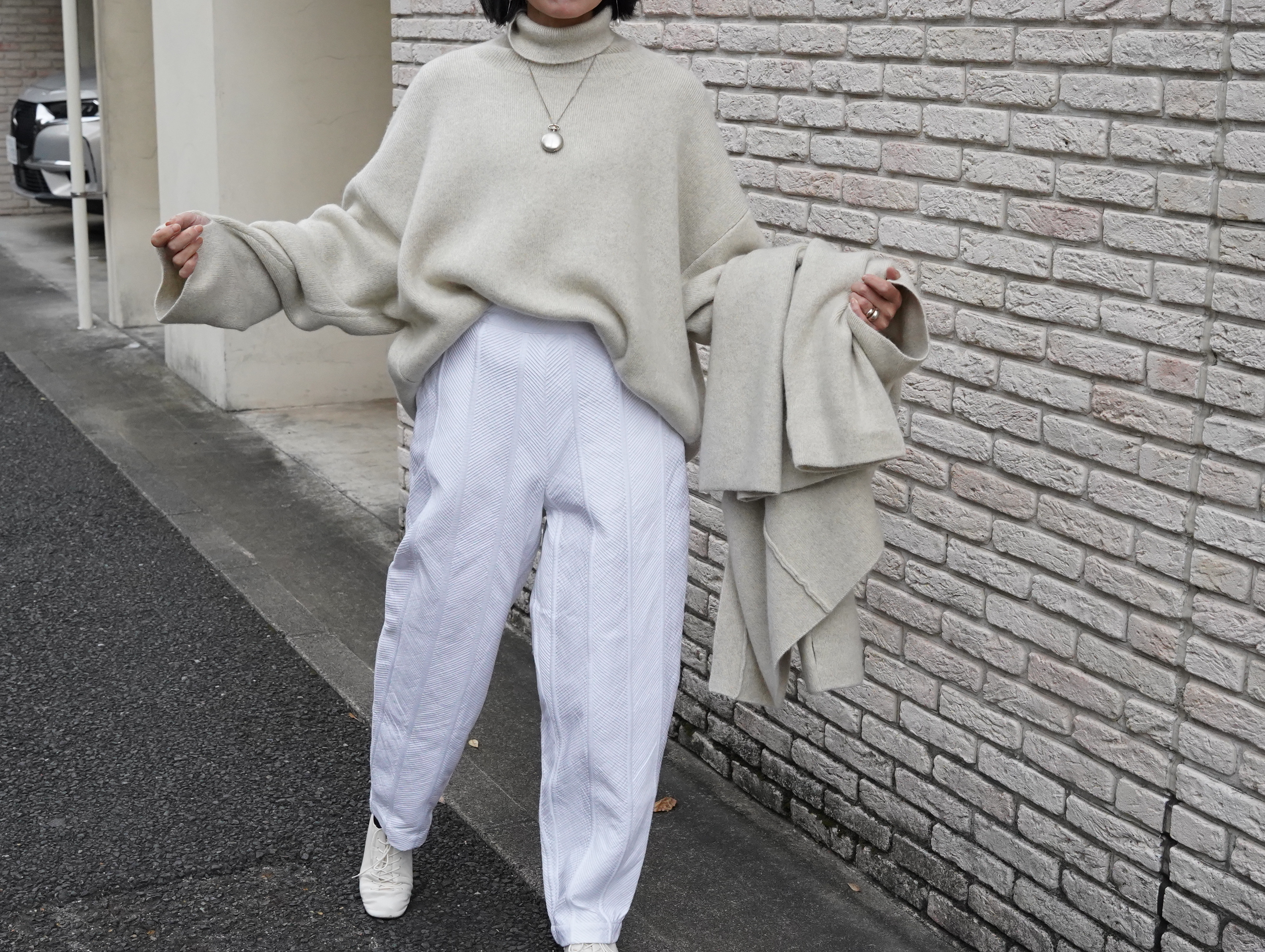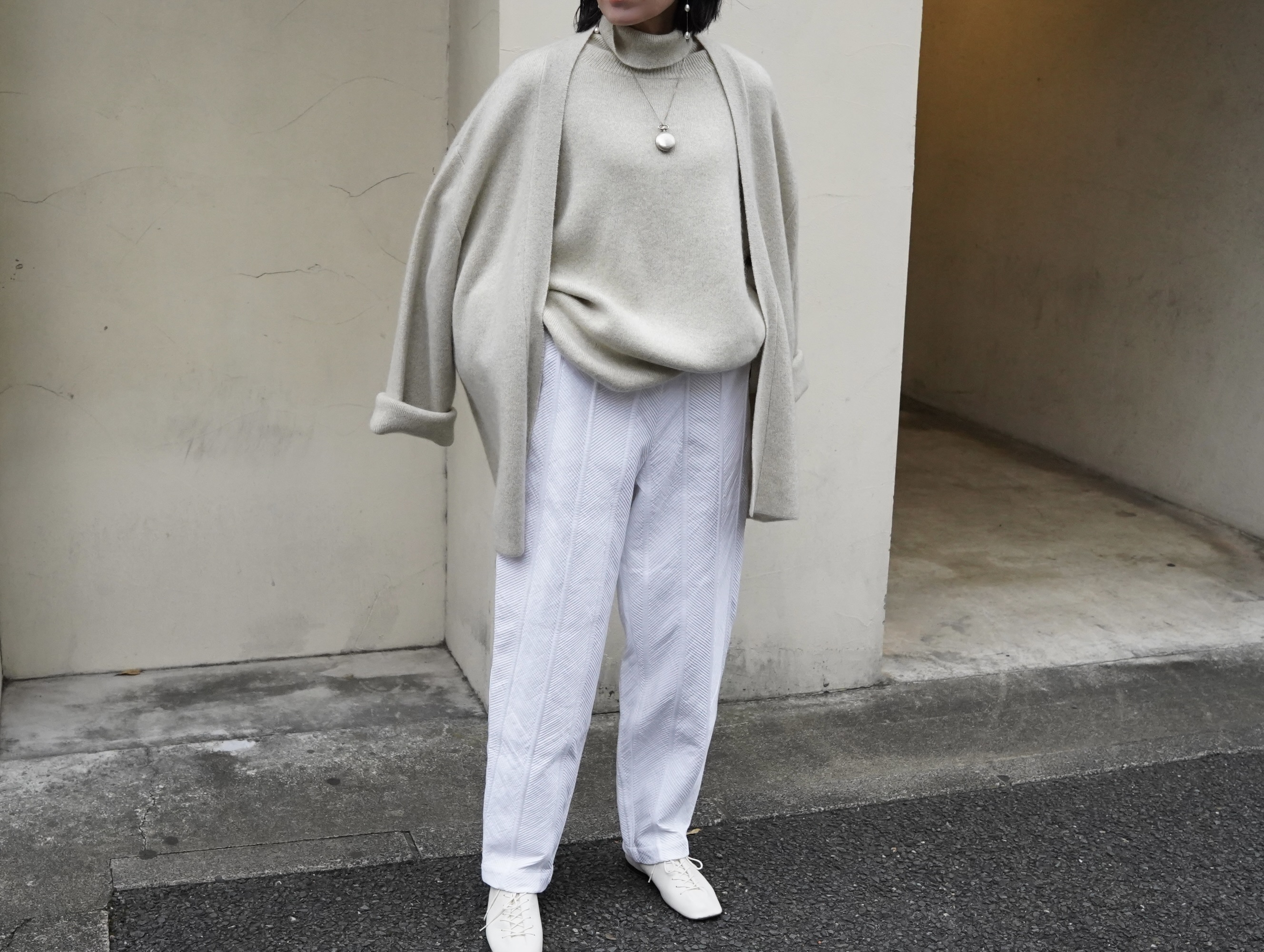 冬の着こなしに映えるソリッドなホワイトカラー。