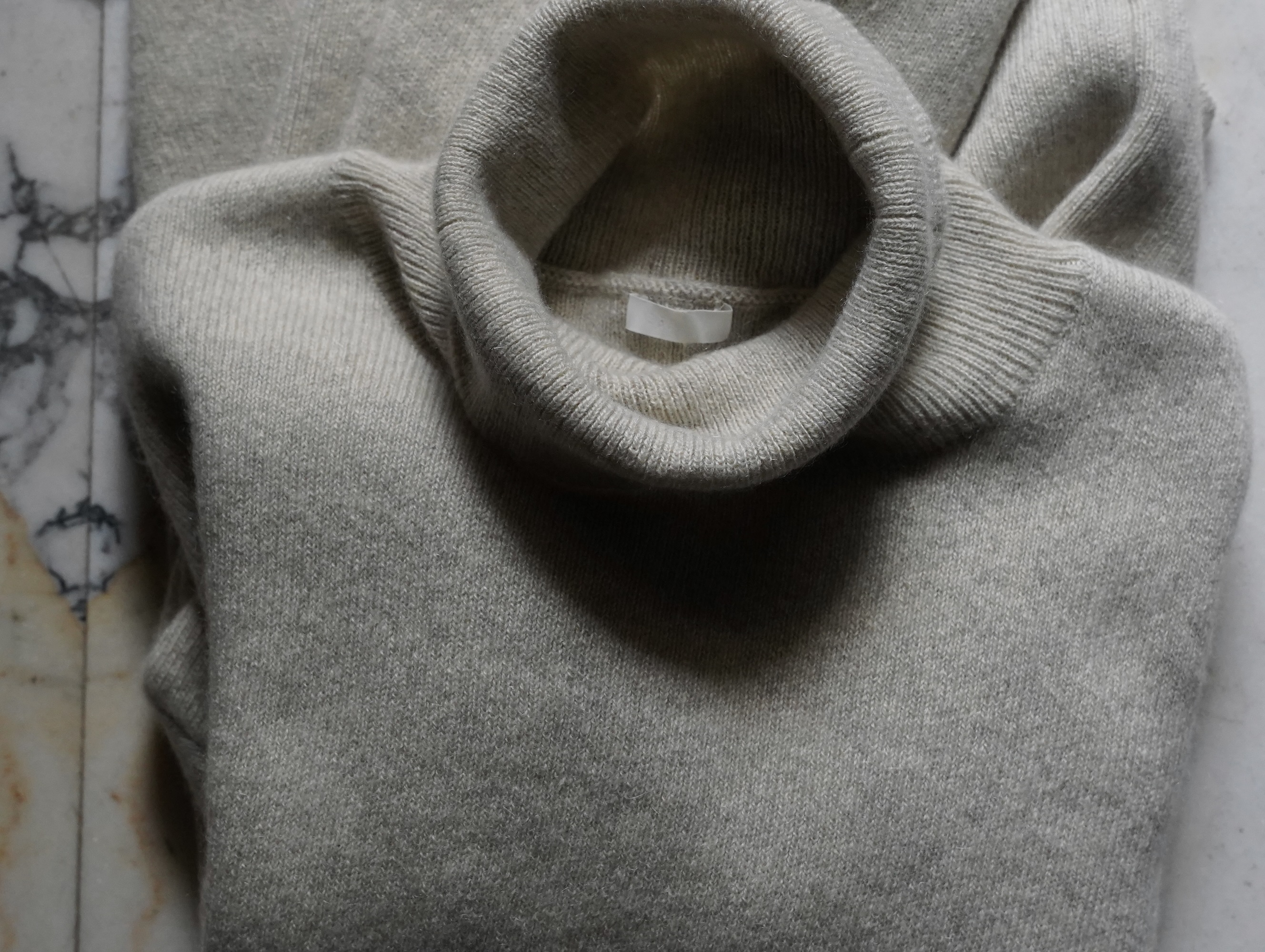 モンゴル自治区のヤクの原毛を使ったハイネックニット。