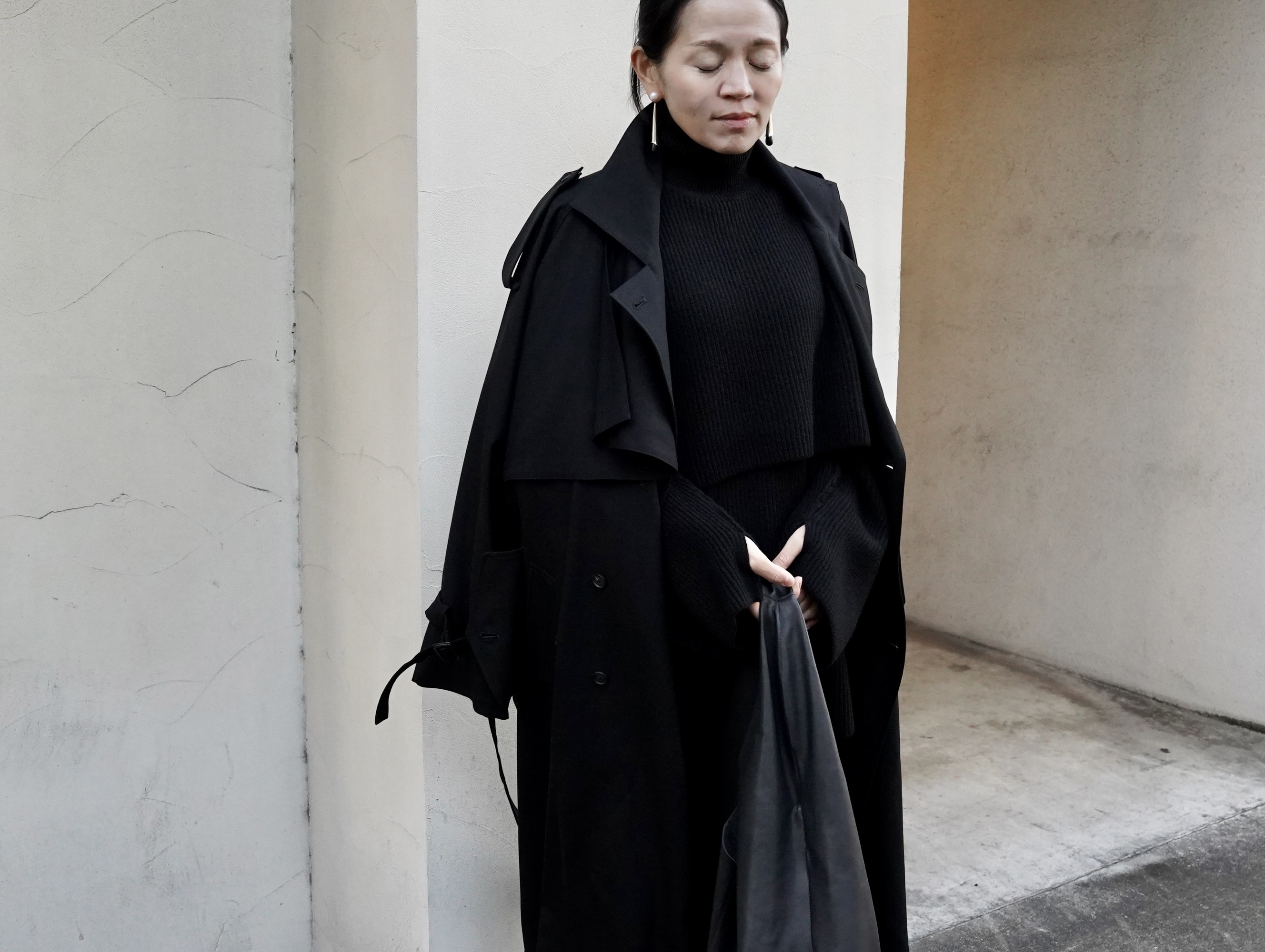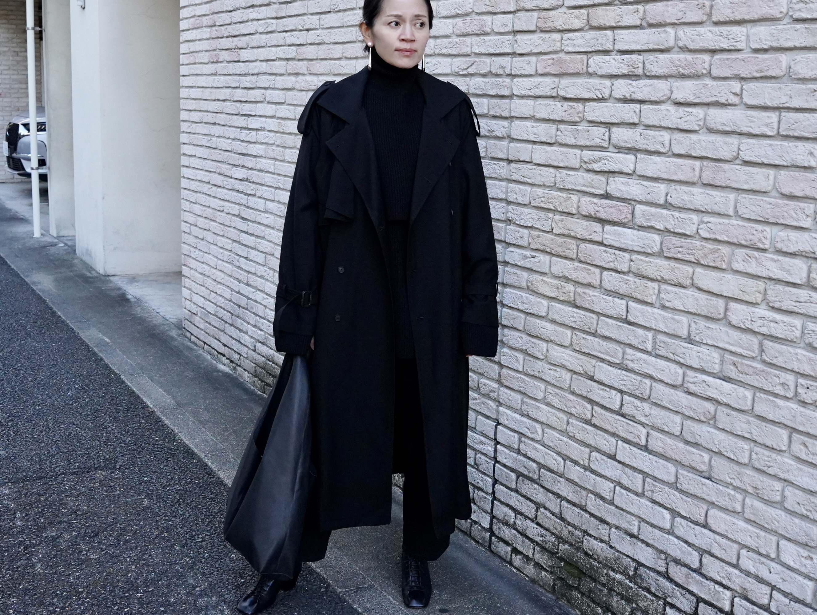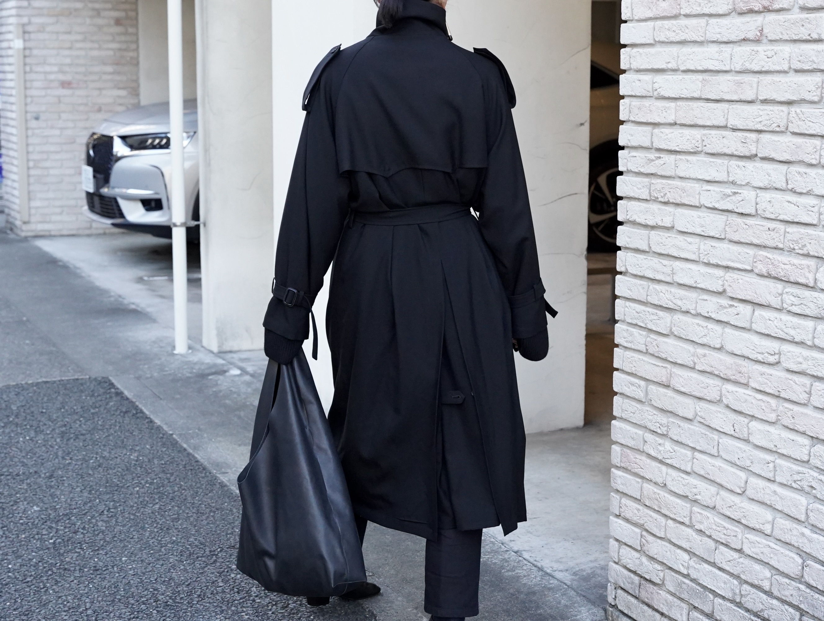 ・DRAPED TRENCH COAT ¥132,000 (Tax incl)/ SEEALL (シーオール)