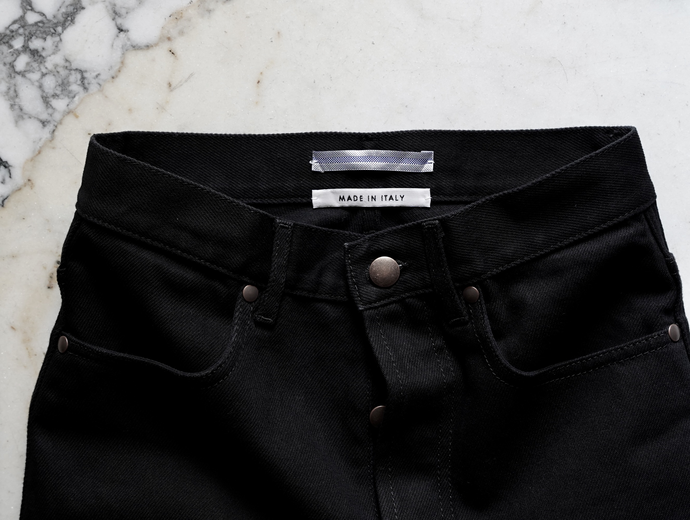 ・HIGH WAISTED BLACK DENIM ¥99,000 (Tax incl)/ Cristaseya(クリスタセヤ)