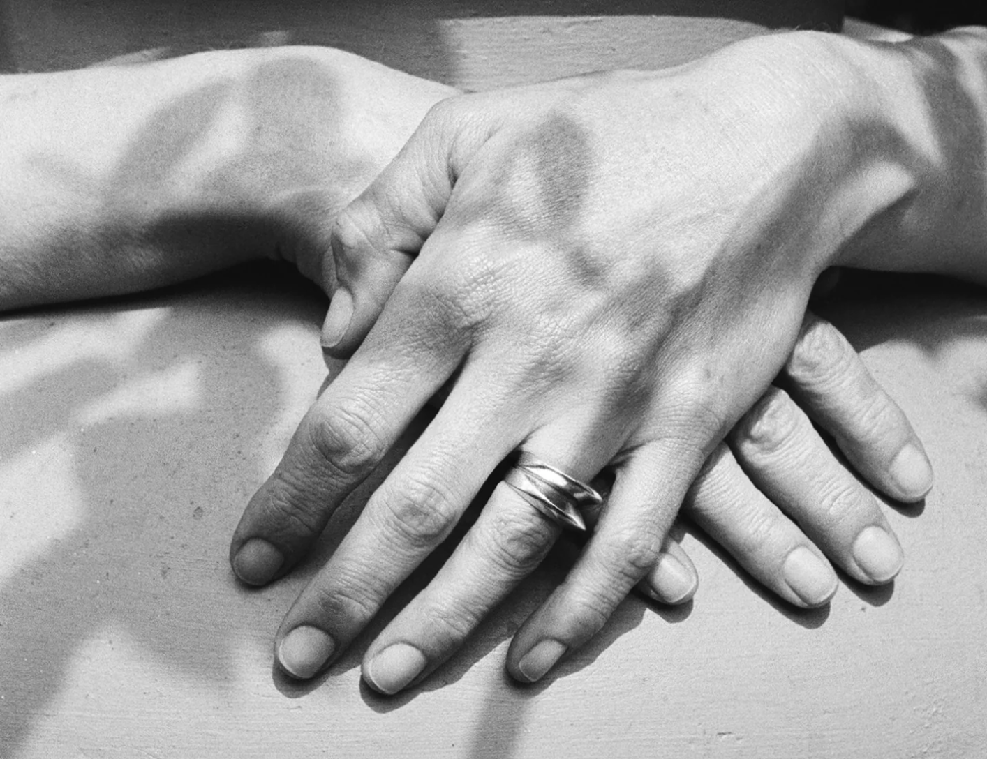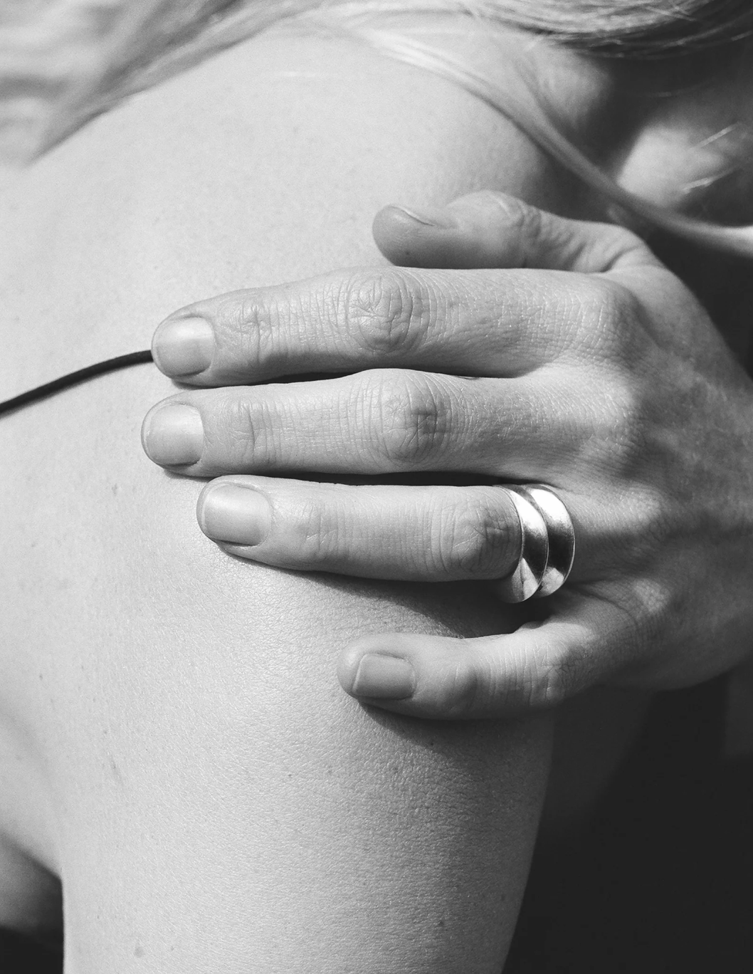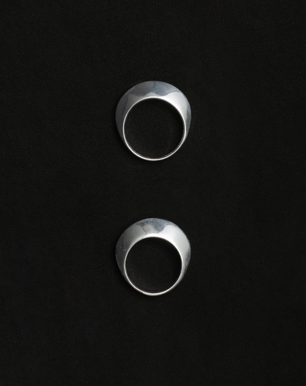 彫刻的なフォルムのエレガントなペアスタッキングリング。2個セット。