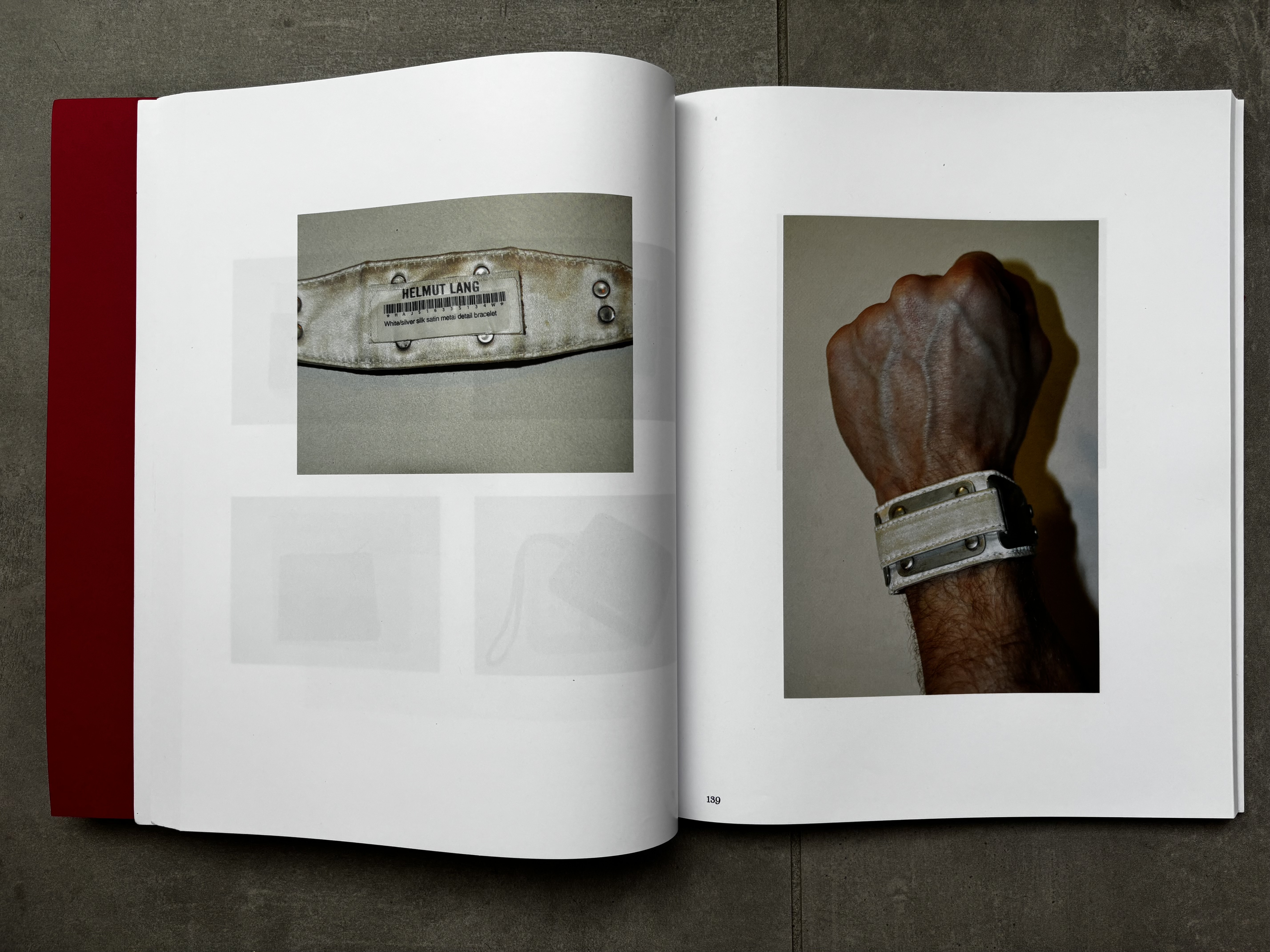 この写真集は、元デザイナーのアーカイブがあったSOHO(ニューヨーク)のビルを襲った2010年の悪名高い火災から救い出され、数年後に売却されたアパレルやアクセサリーを視覚的にカプセル化したものです。アンドレアソンによる写真は、これらの販売のための視覚的なサポートとして率直に用意されたもので、大惨事の状況によってあらかじめ決定された編集で、ヘルムート・ラングのデザインの重要かつ比類のない調査として機能しています。