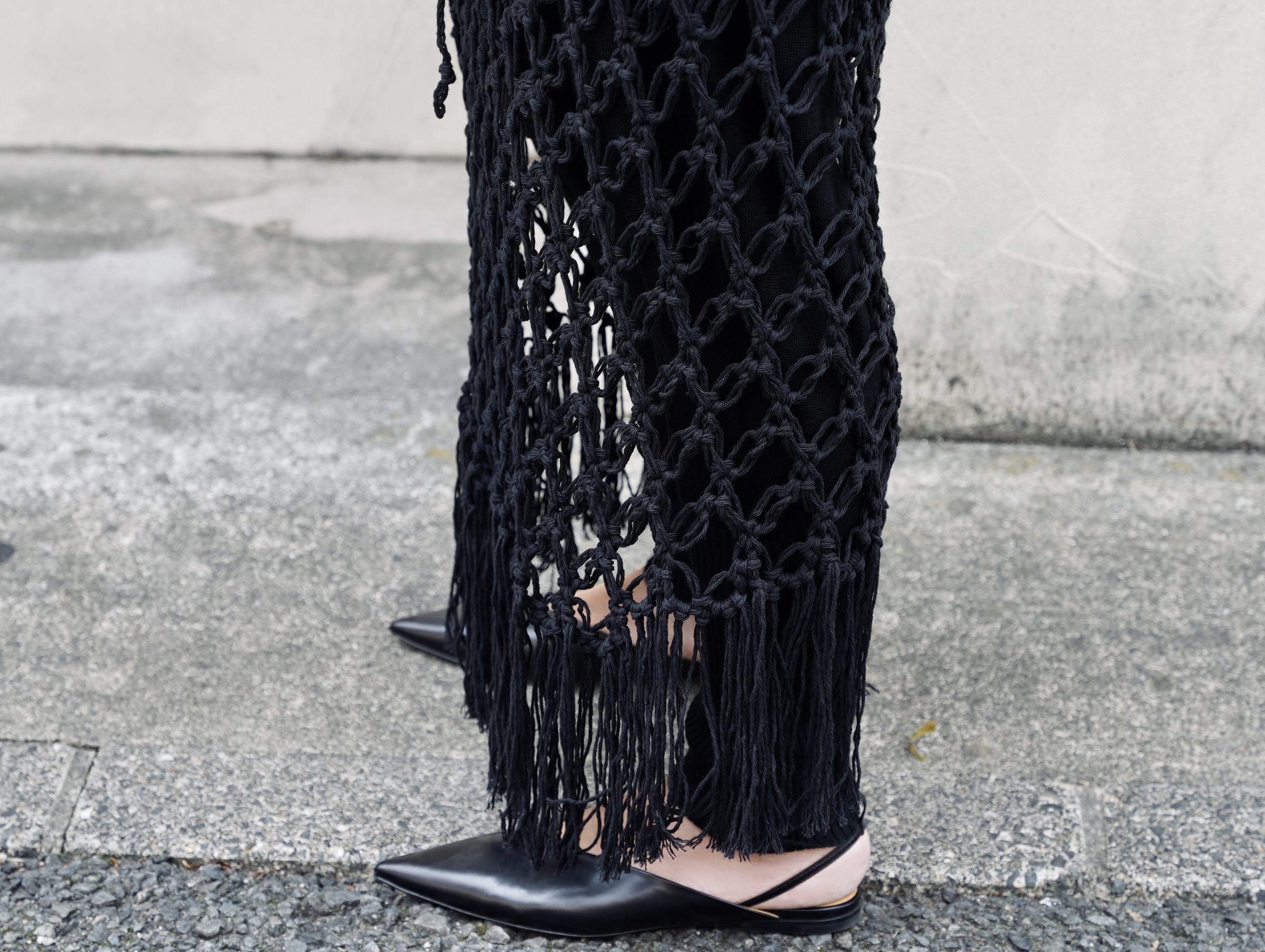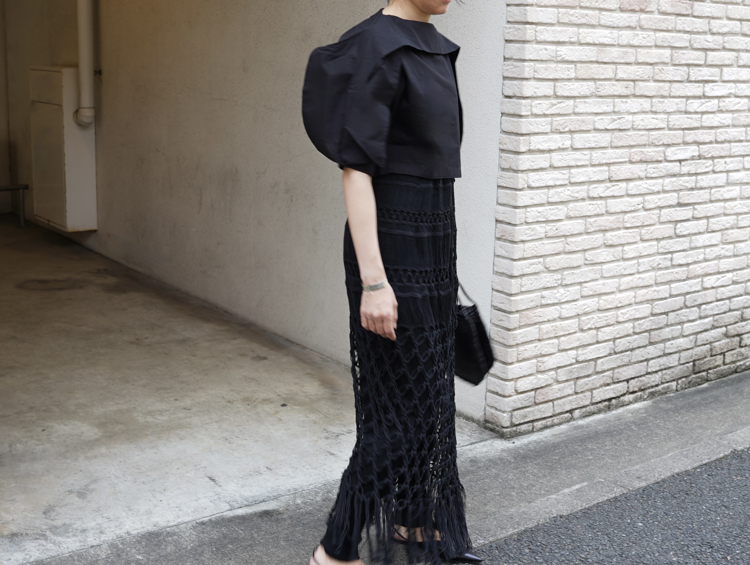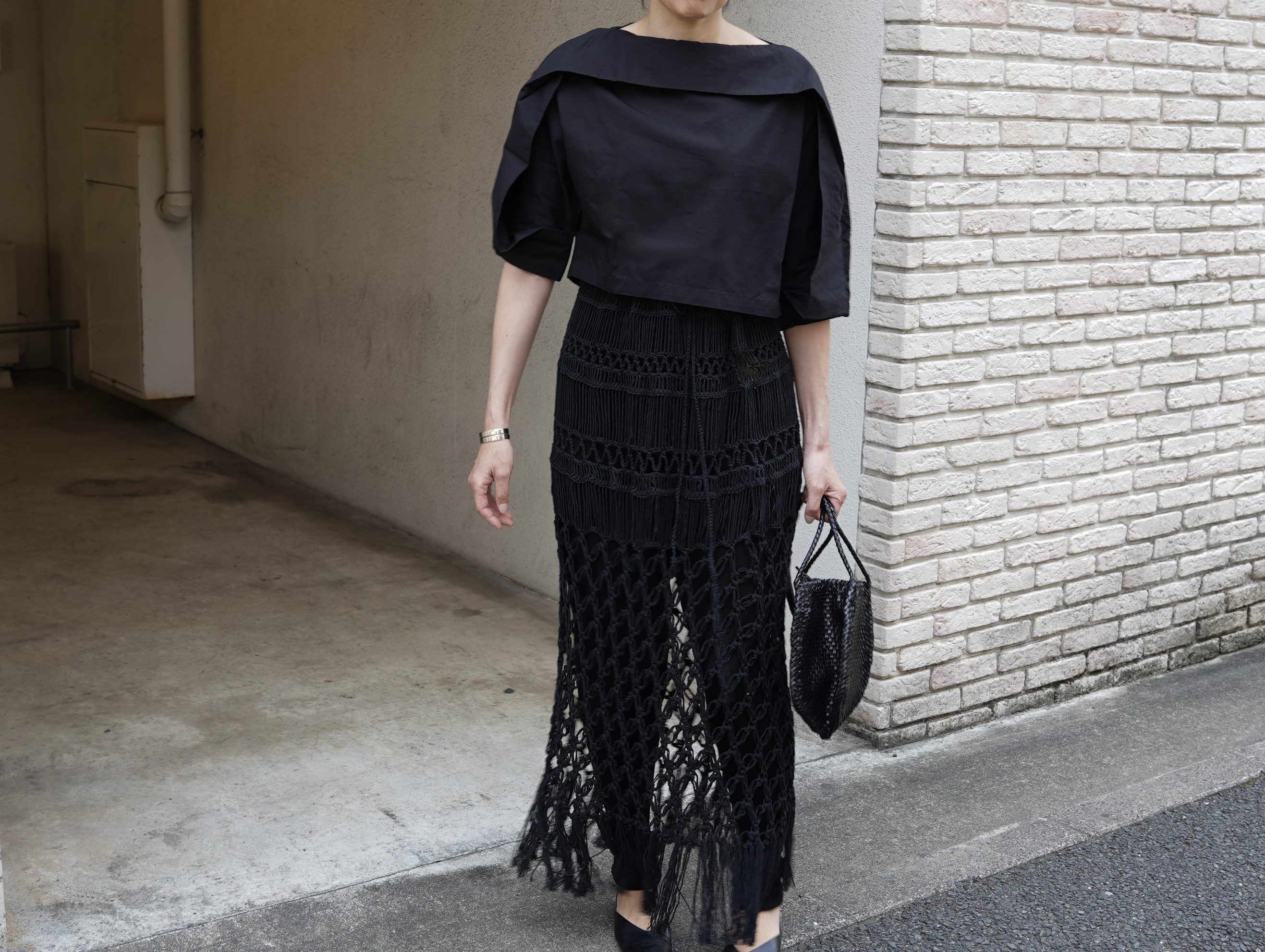 ナチュラルな印象のある編みですが、BLACKで表現する事でモードなアイテムに消化しています。