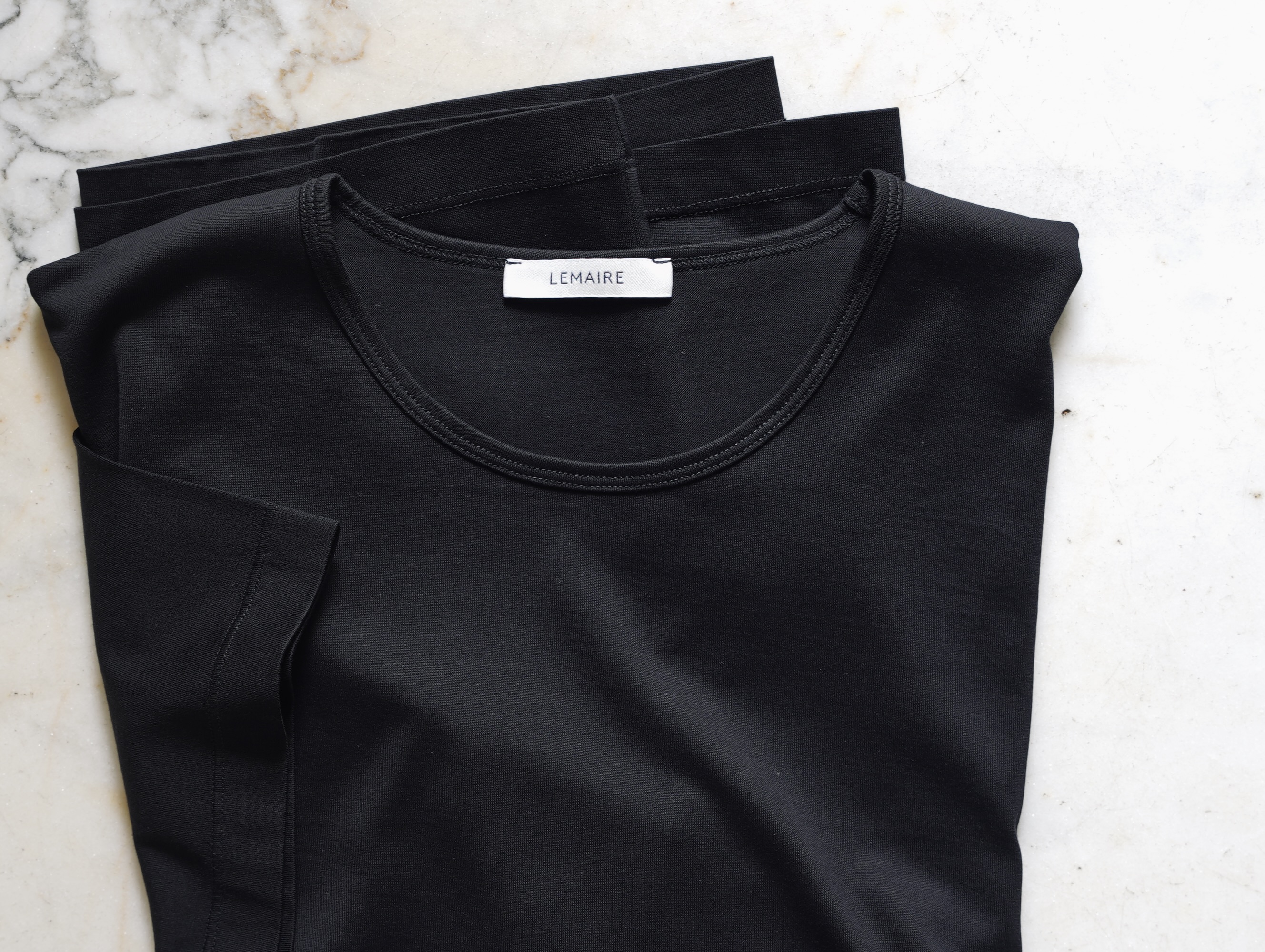 ルメール定番のリラックスクルーネックTシャツ。軽やかなマーセライズドコットンジャージーを使用。裾には2本針のトップステッチが施されています。カラーはBLACK。