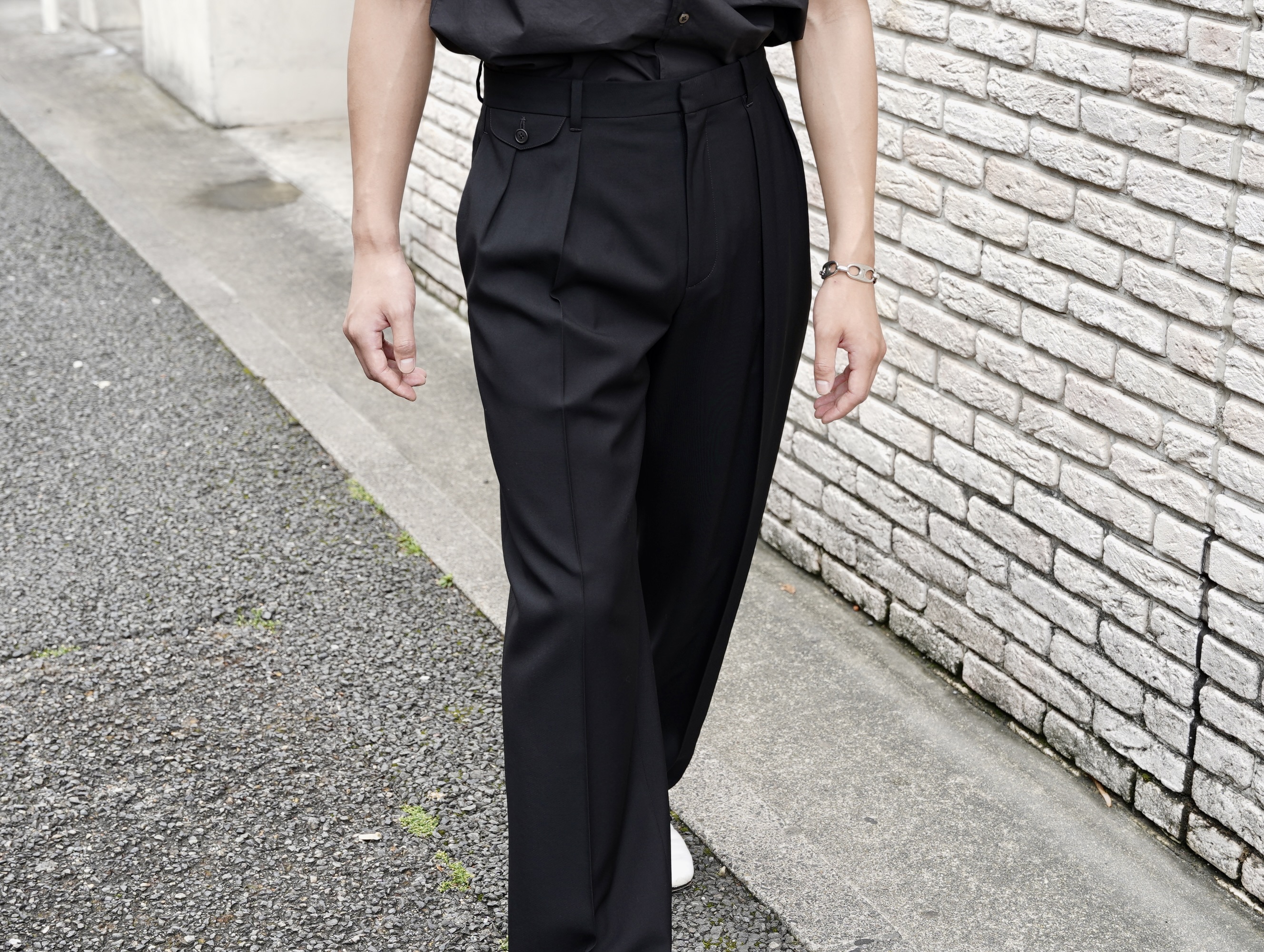 耐久性と抜群の肌触りを持つ柔らかいウールギャバジン製。カラーはBLACK。