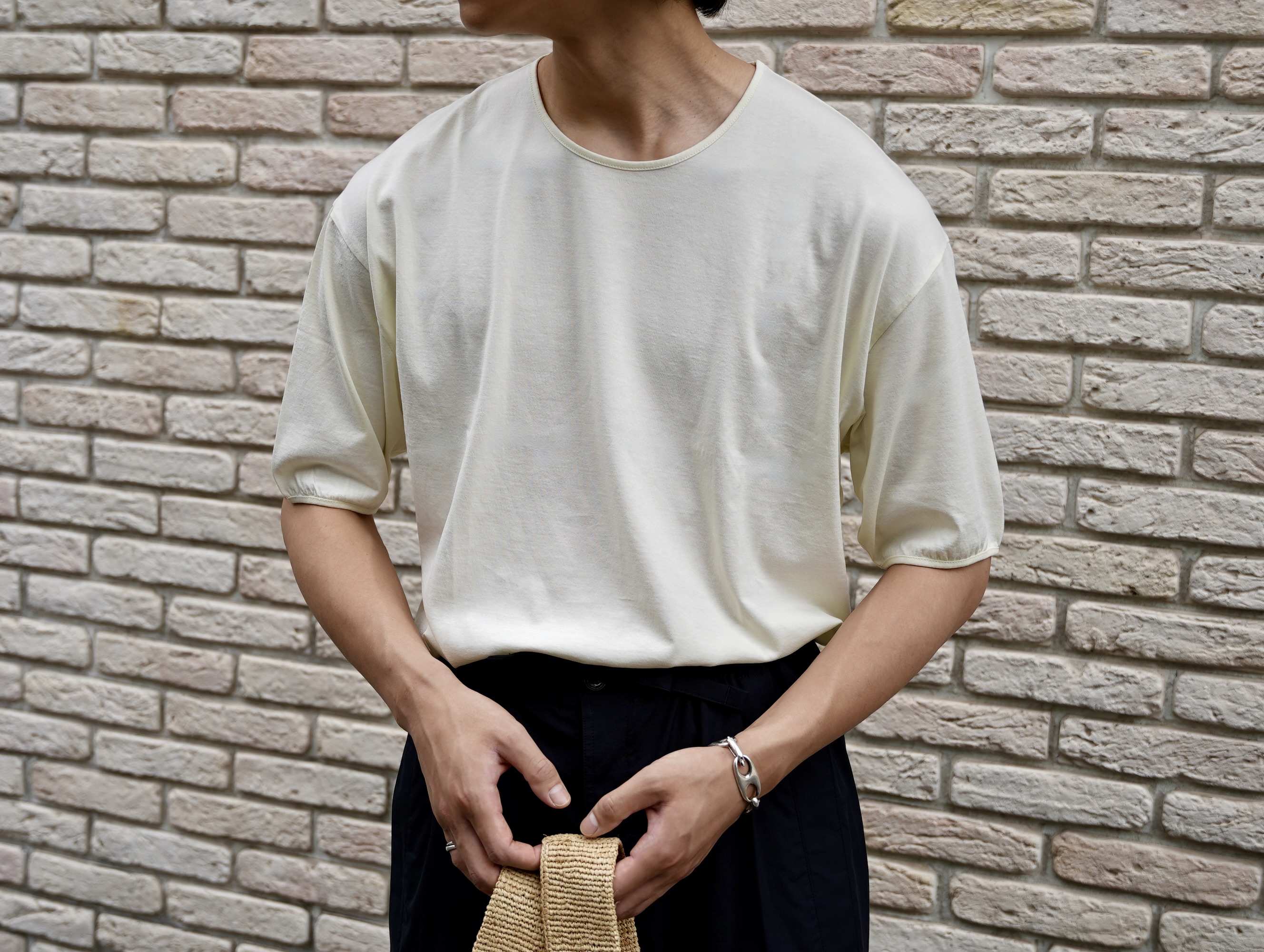 細めに設計された袖口と裾のリブ仕上げがLEMAIRE(ルメール)らしい抜け感を見せます。