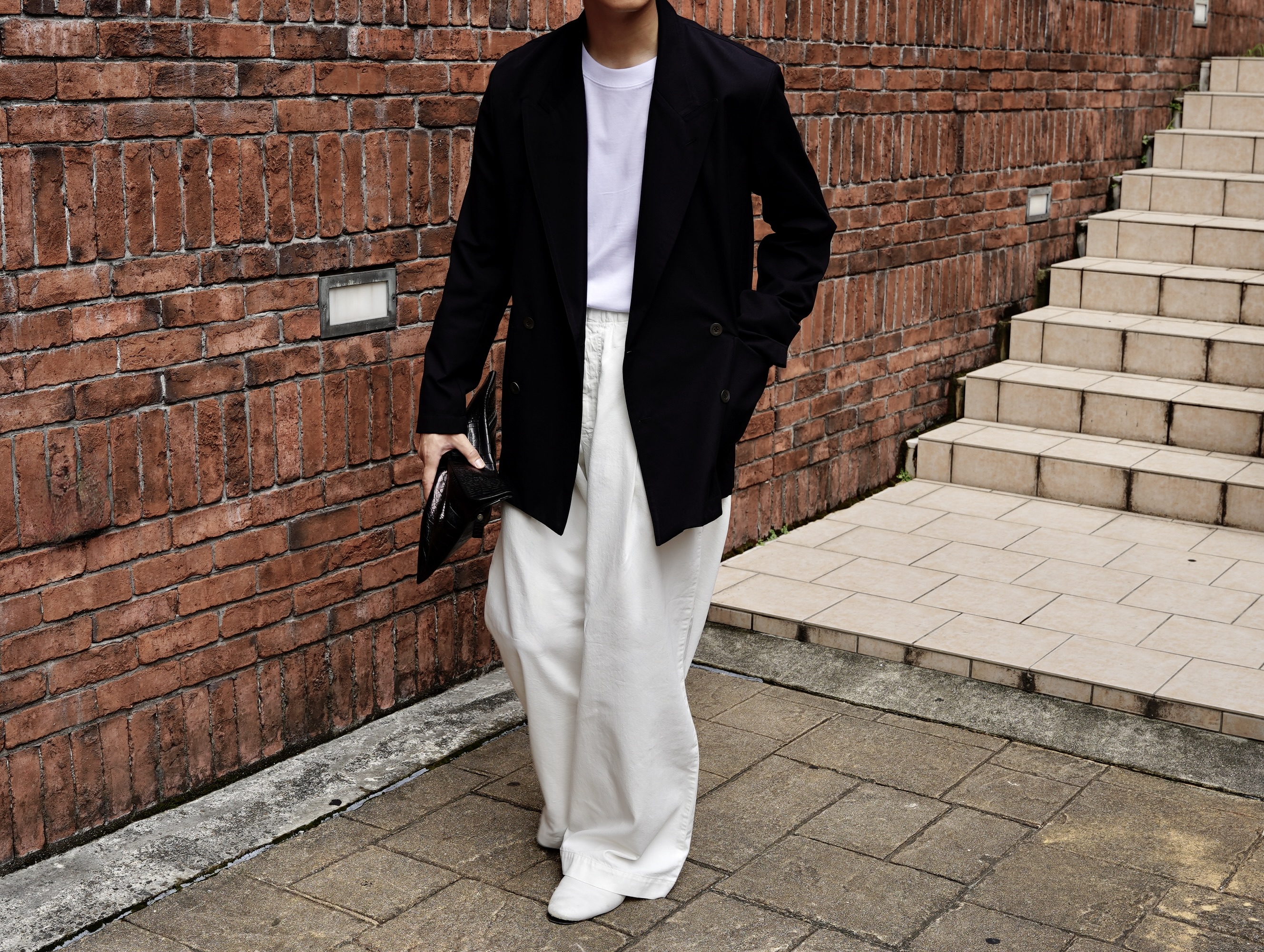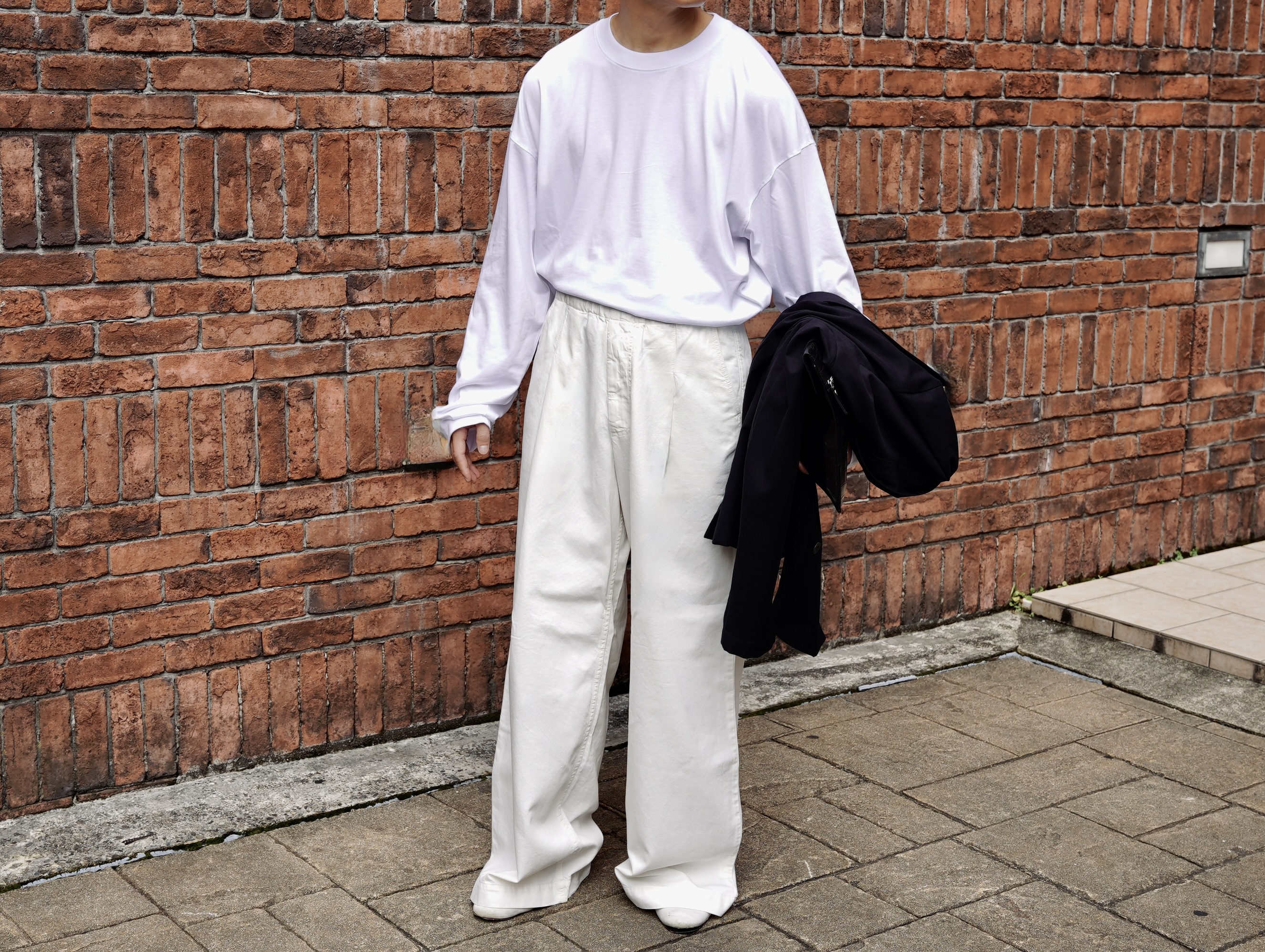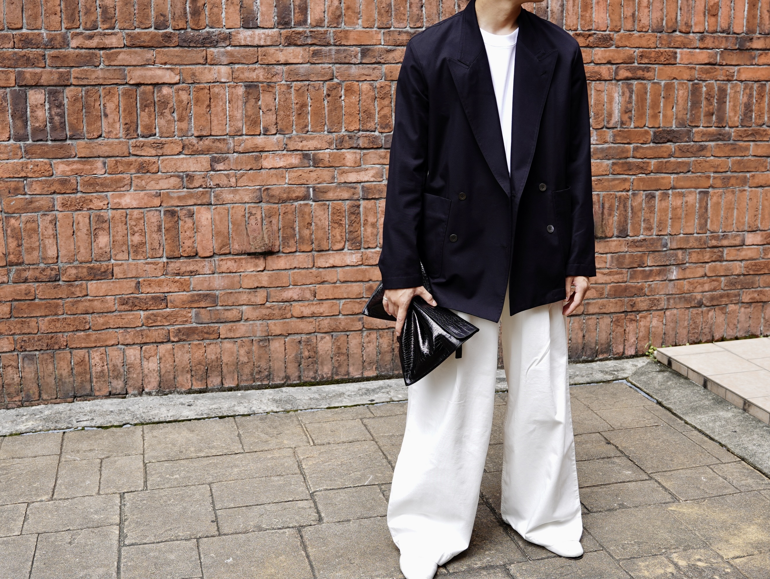 計算されたオーバーシルエット、上質な素材感などシンプルな中に拘りが見えます。