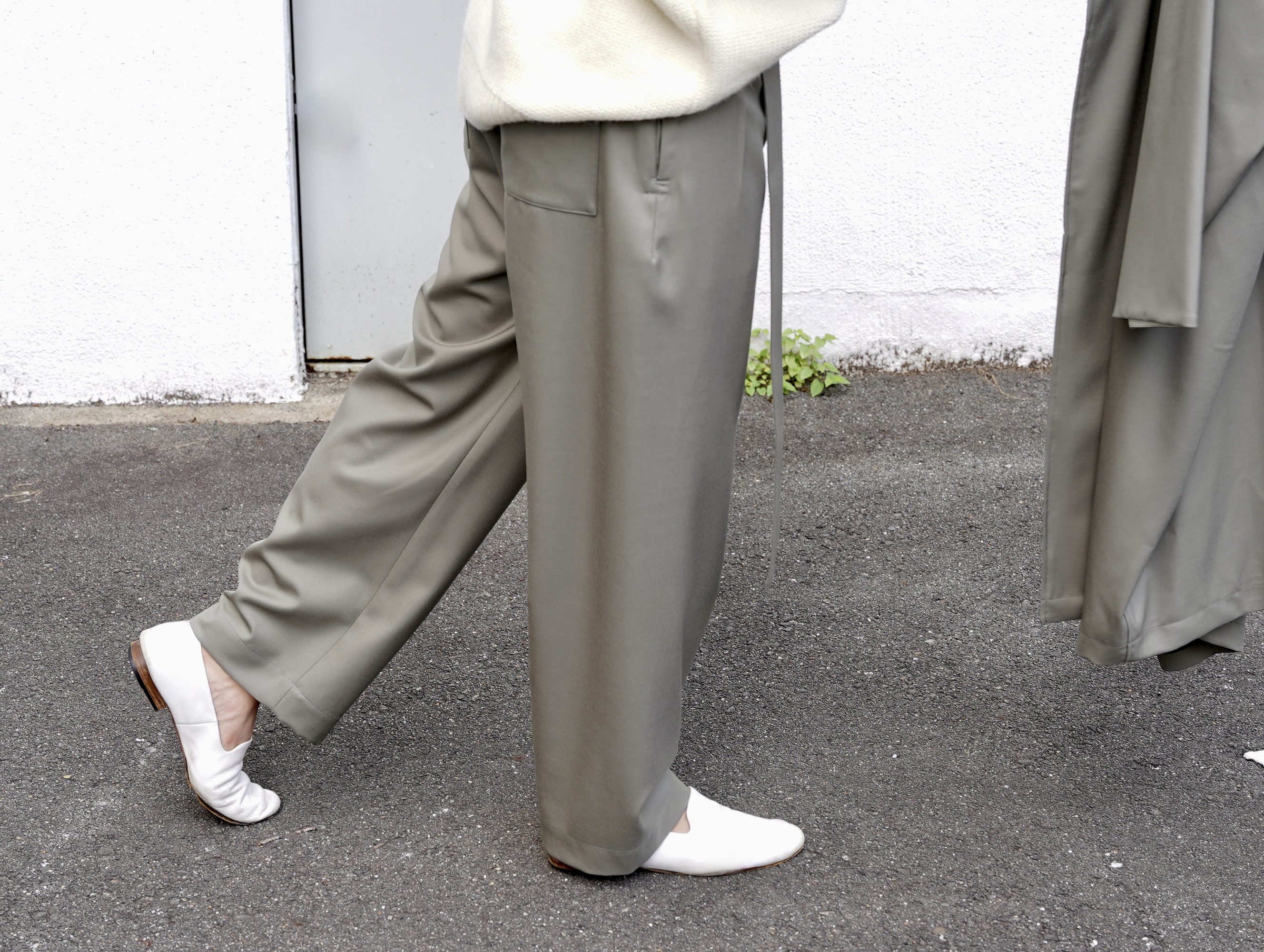 ゆったりとした股上から裾にかけて美しくテーパードしていきます。