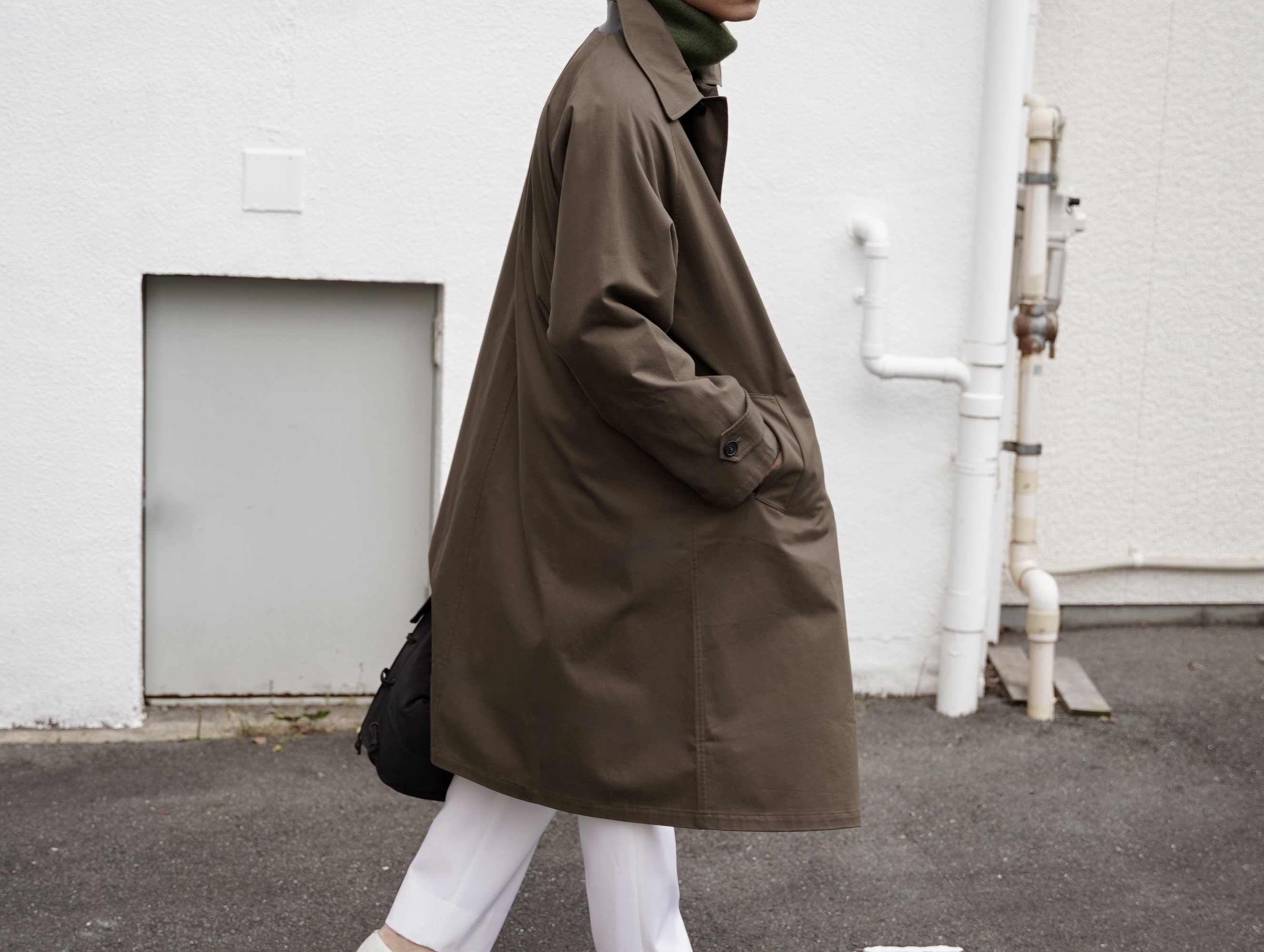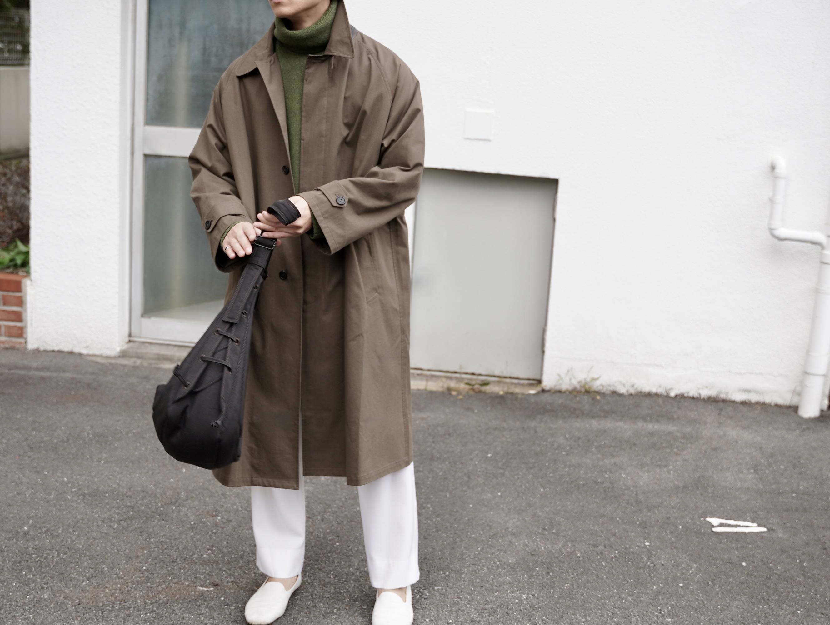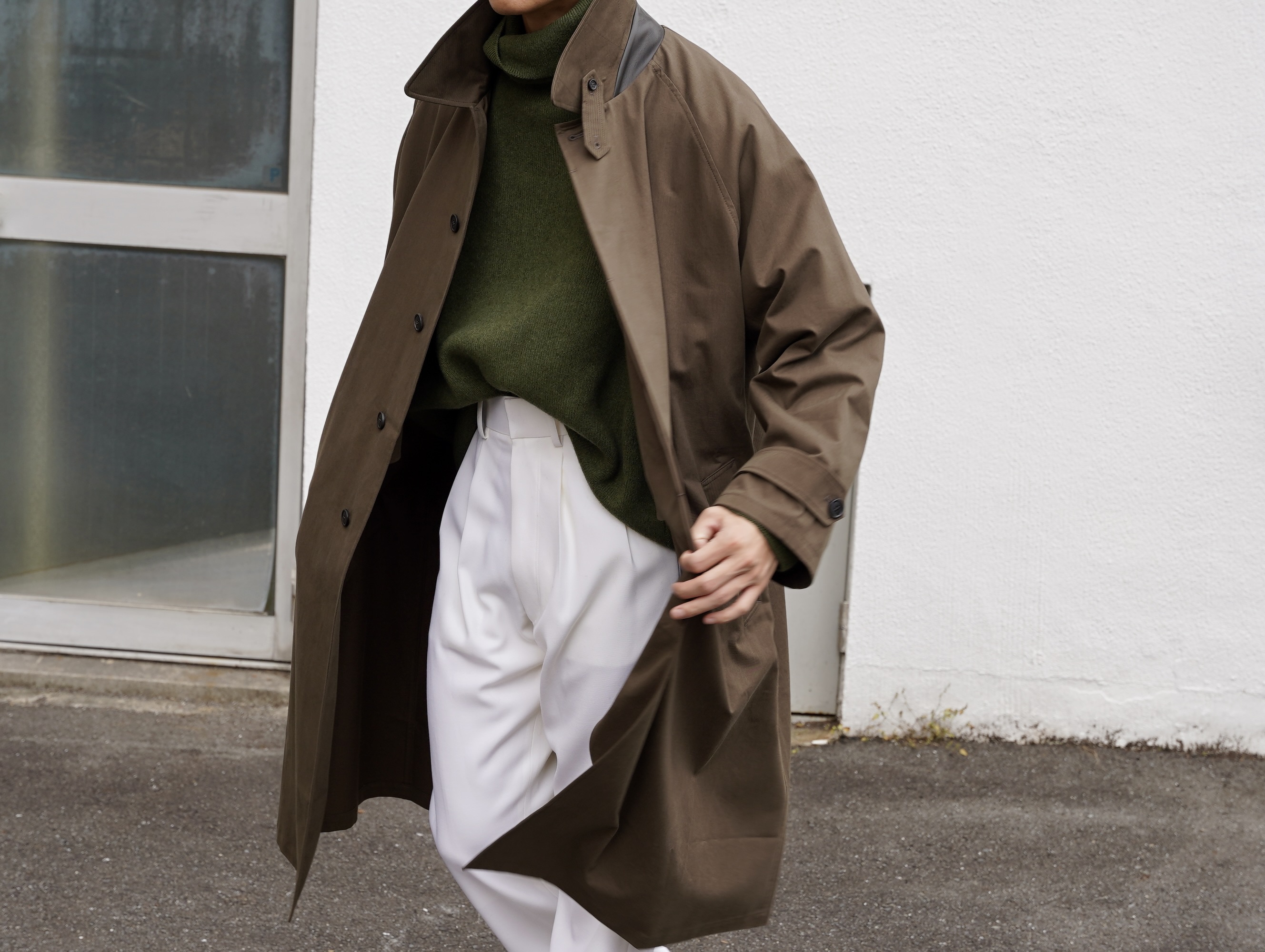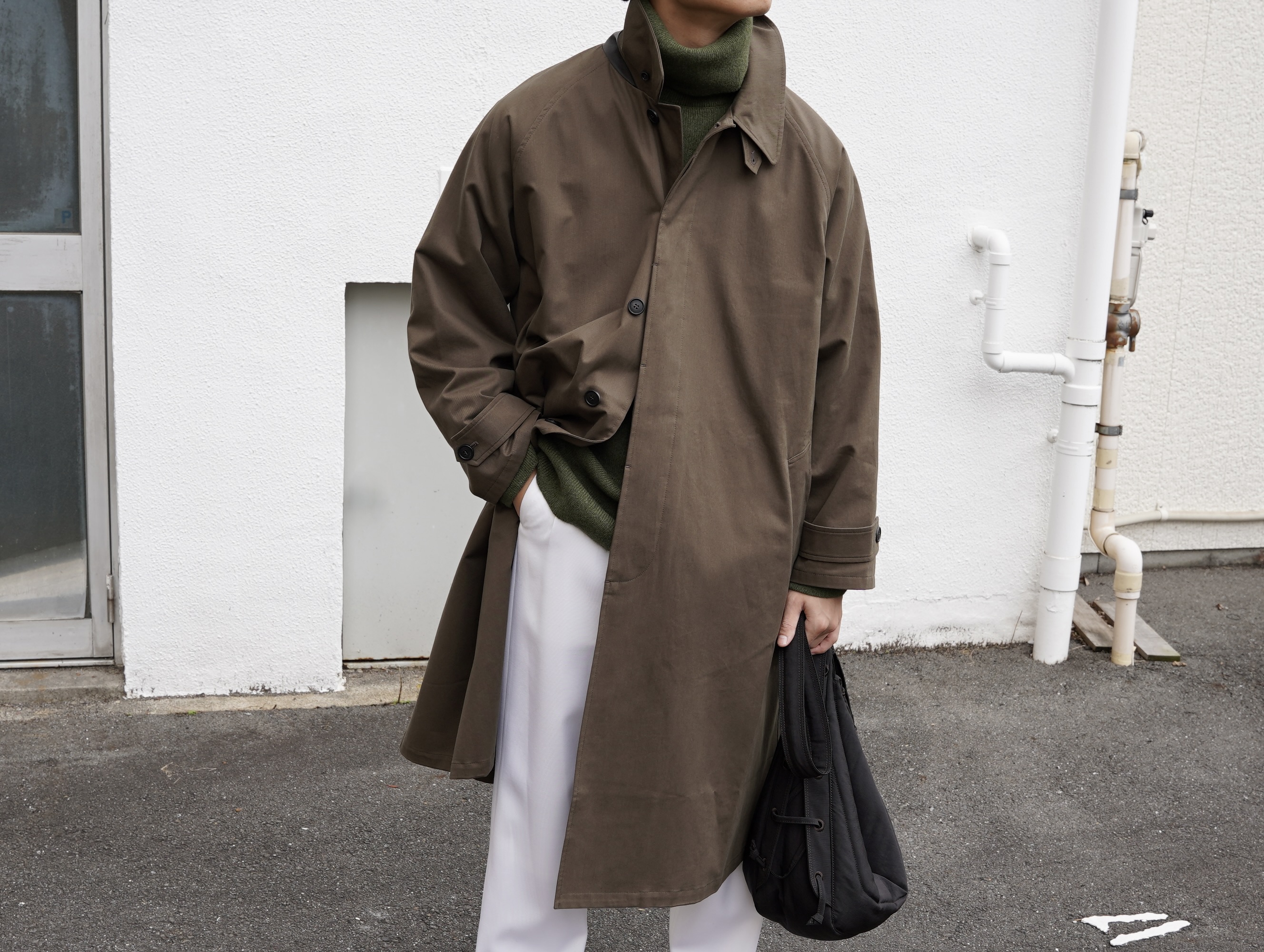 ・OVERSIZED TRENCH WITH LEATHERPATCH ¥341,000 (Tax incl)/ Cristaseya(クリスタセヤ)