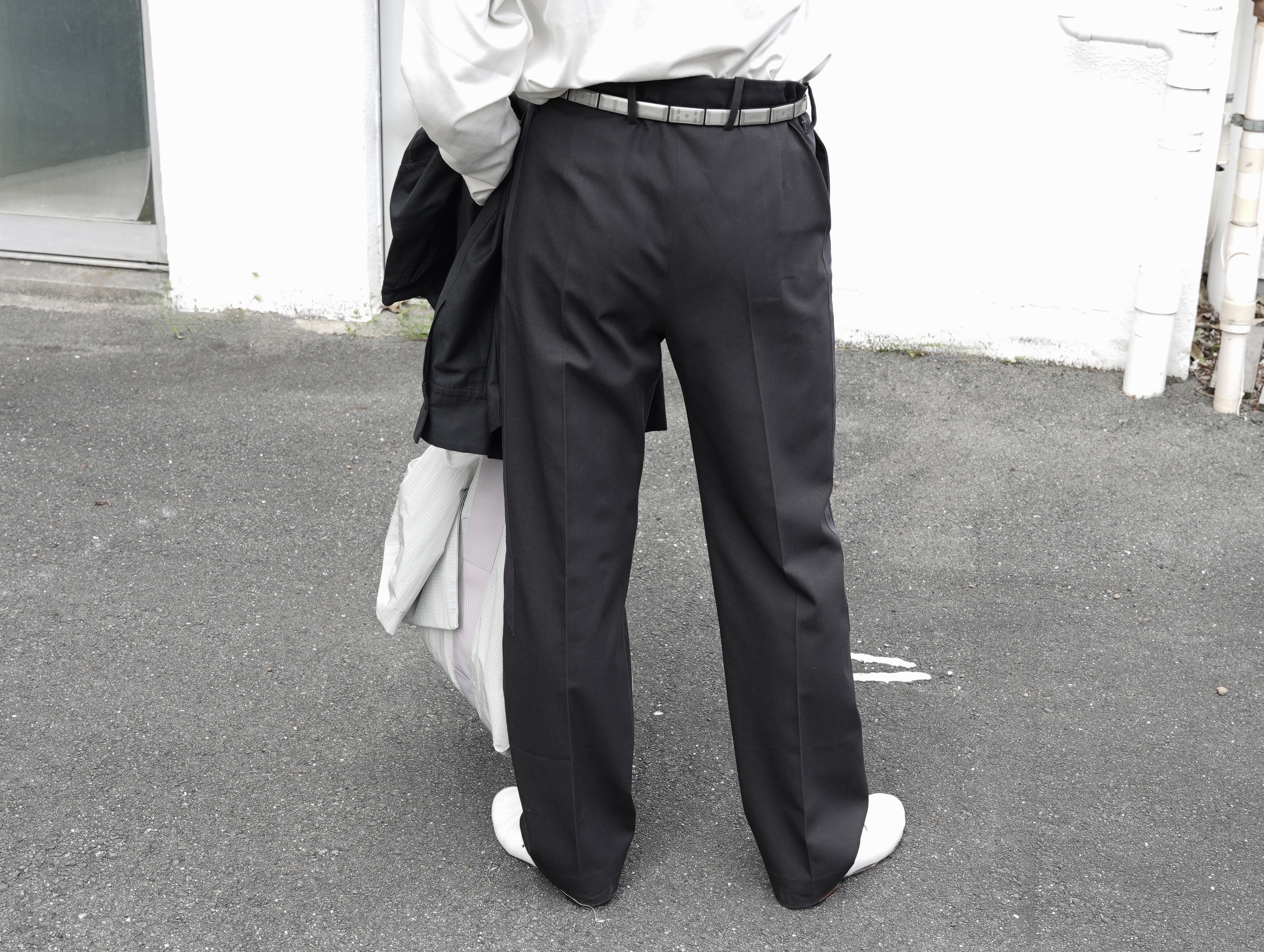 日本製のハイツイスト・コットンサテンを使用したトラウザーズ。