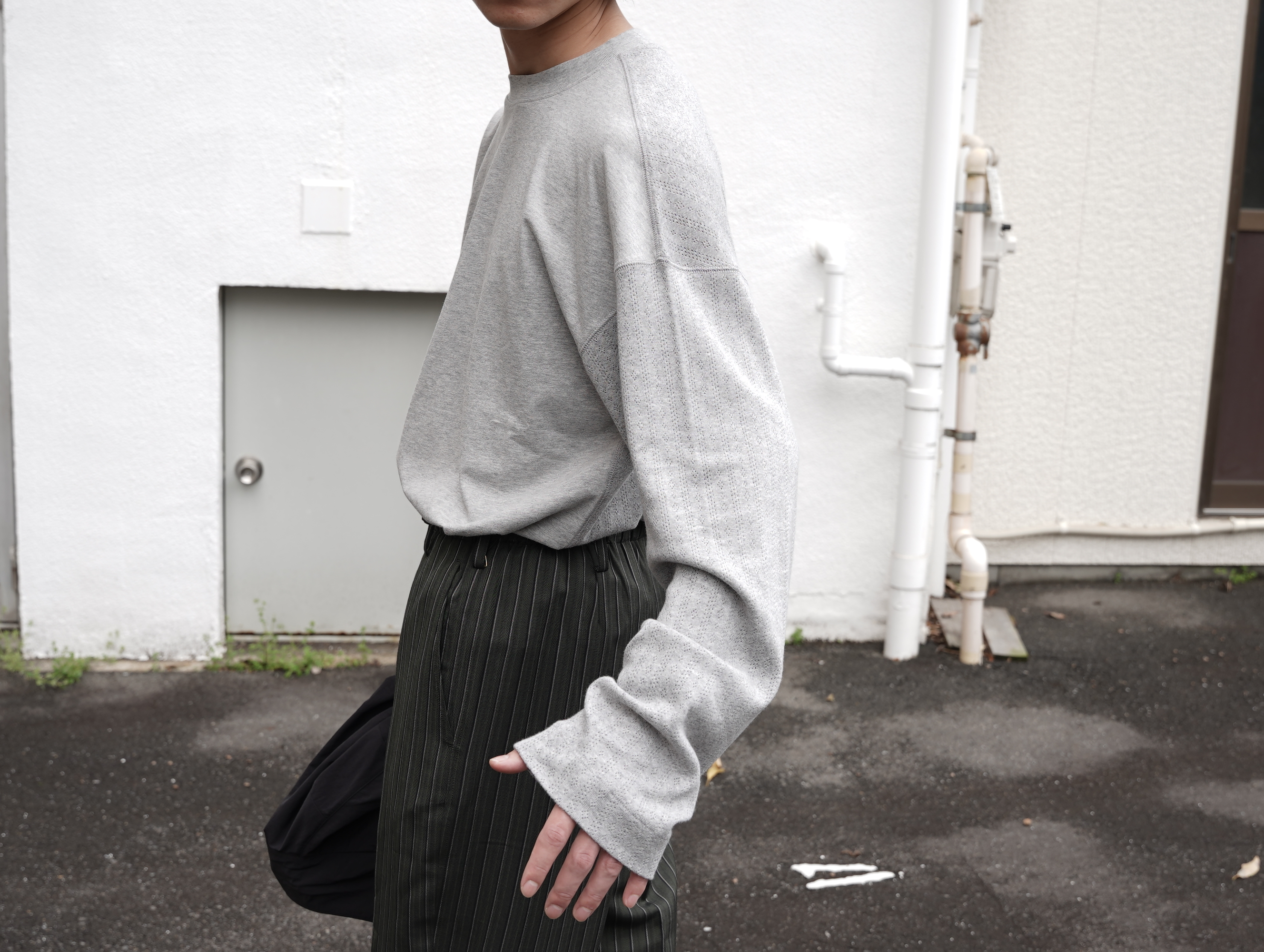 上質で滑らかなコットン生地を活かしたオーバーシルエット。Light Greyカラー。