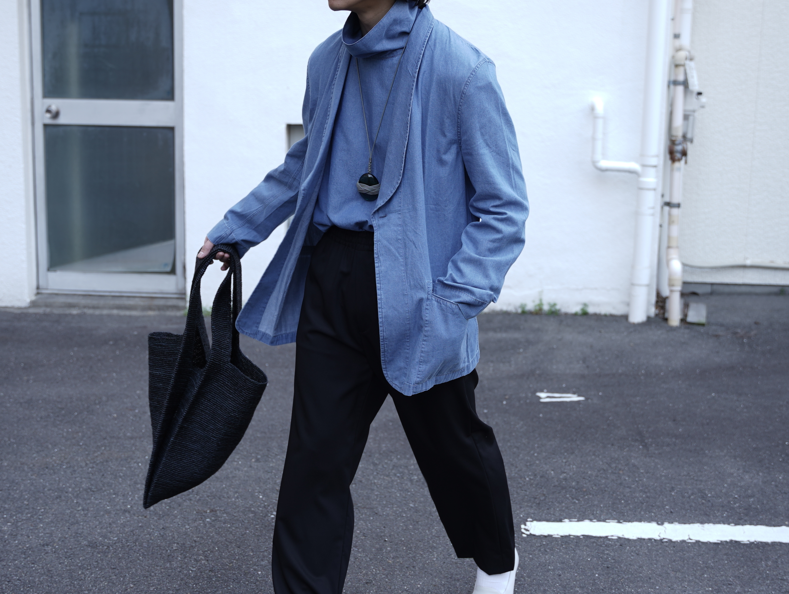軽やかなダンガリー生地を使用し、テーラードジャケットの端正さにシャツのような軽快さを加えています。