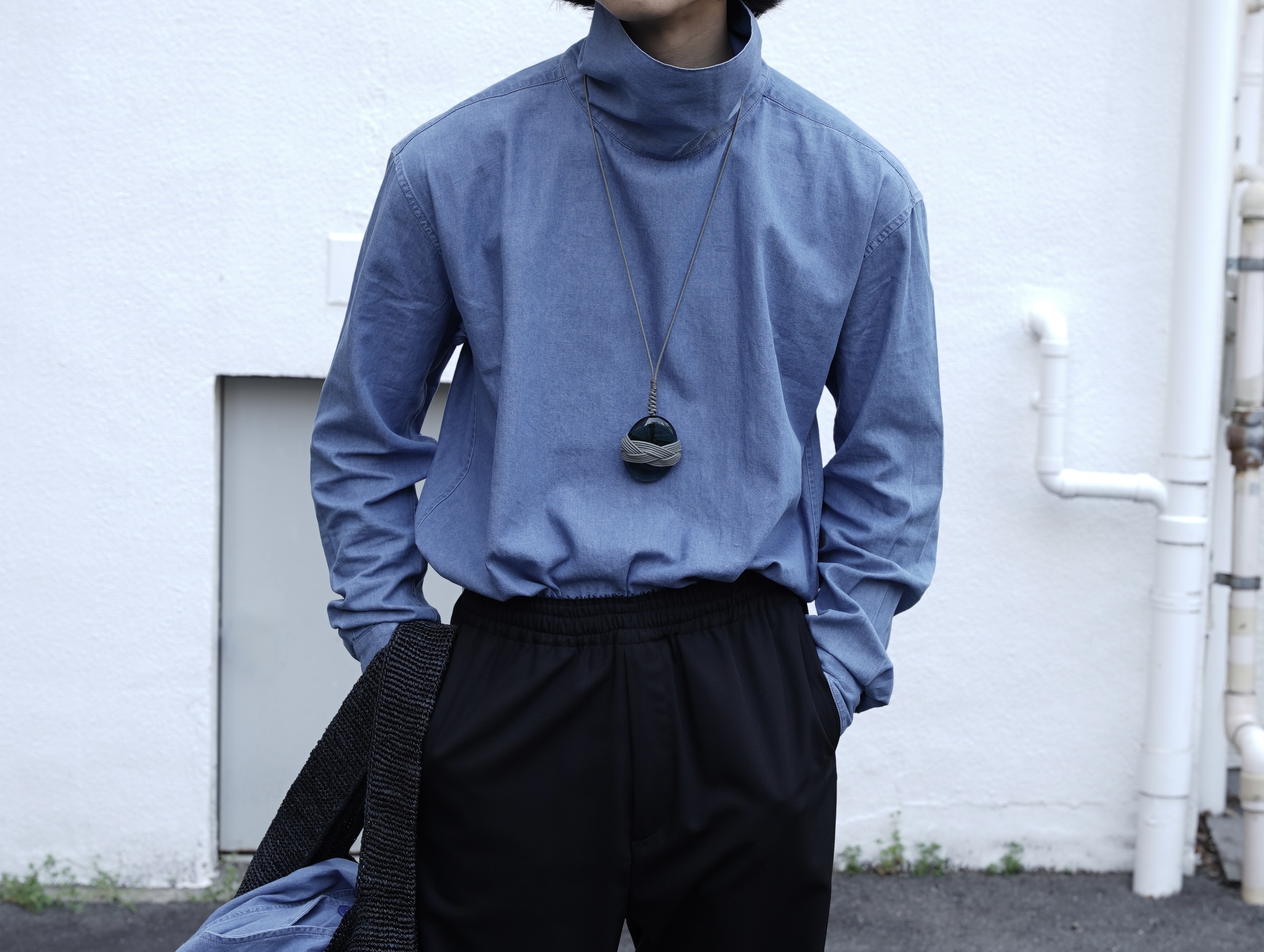 襟を立ててハイネックとしても着用可能です。