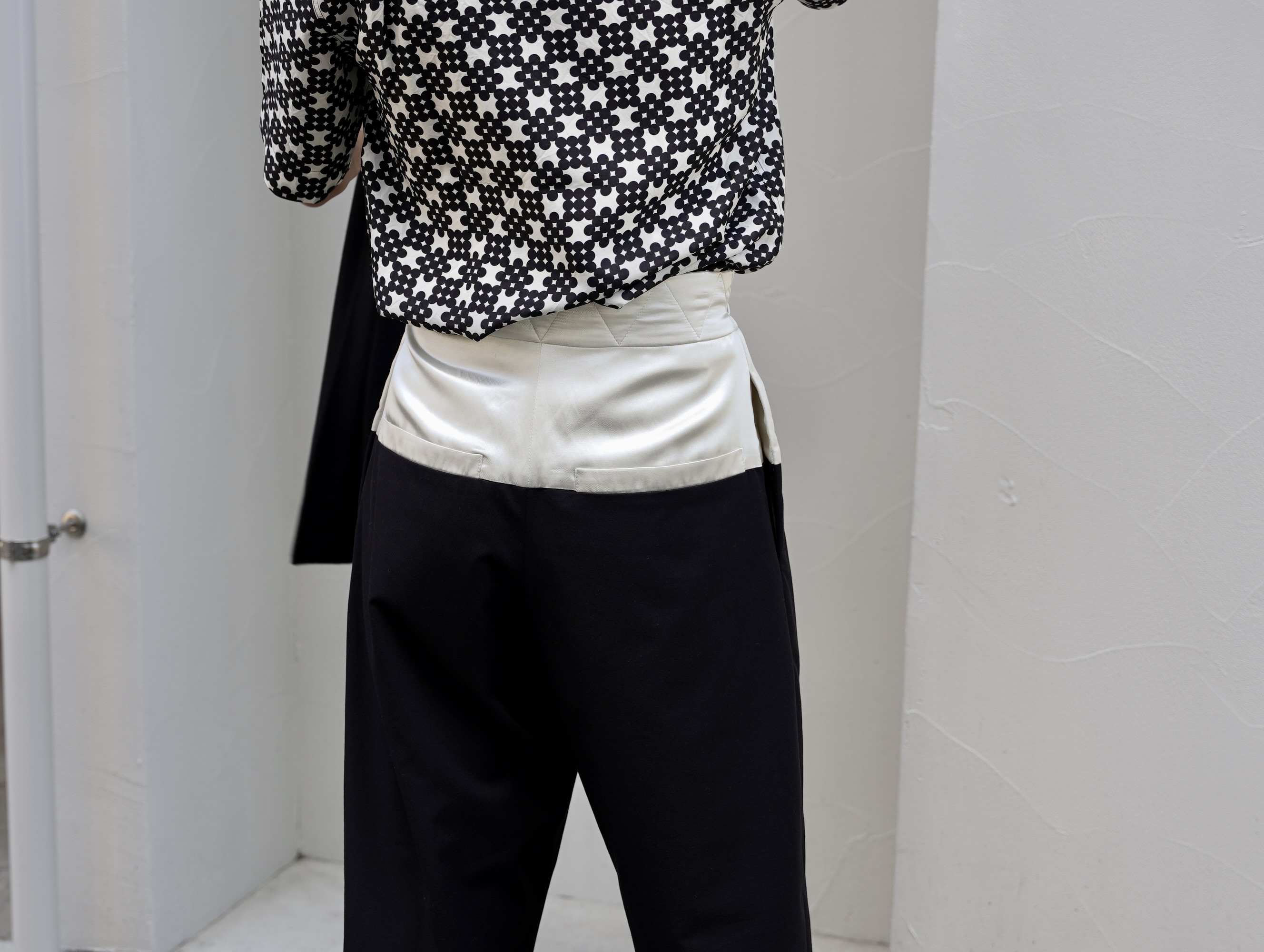 豊かな色彩感覚と構築的なデザインが際立つ、コントラストウエストパンツ。