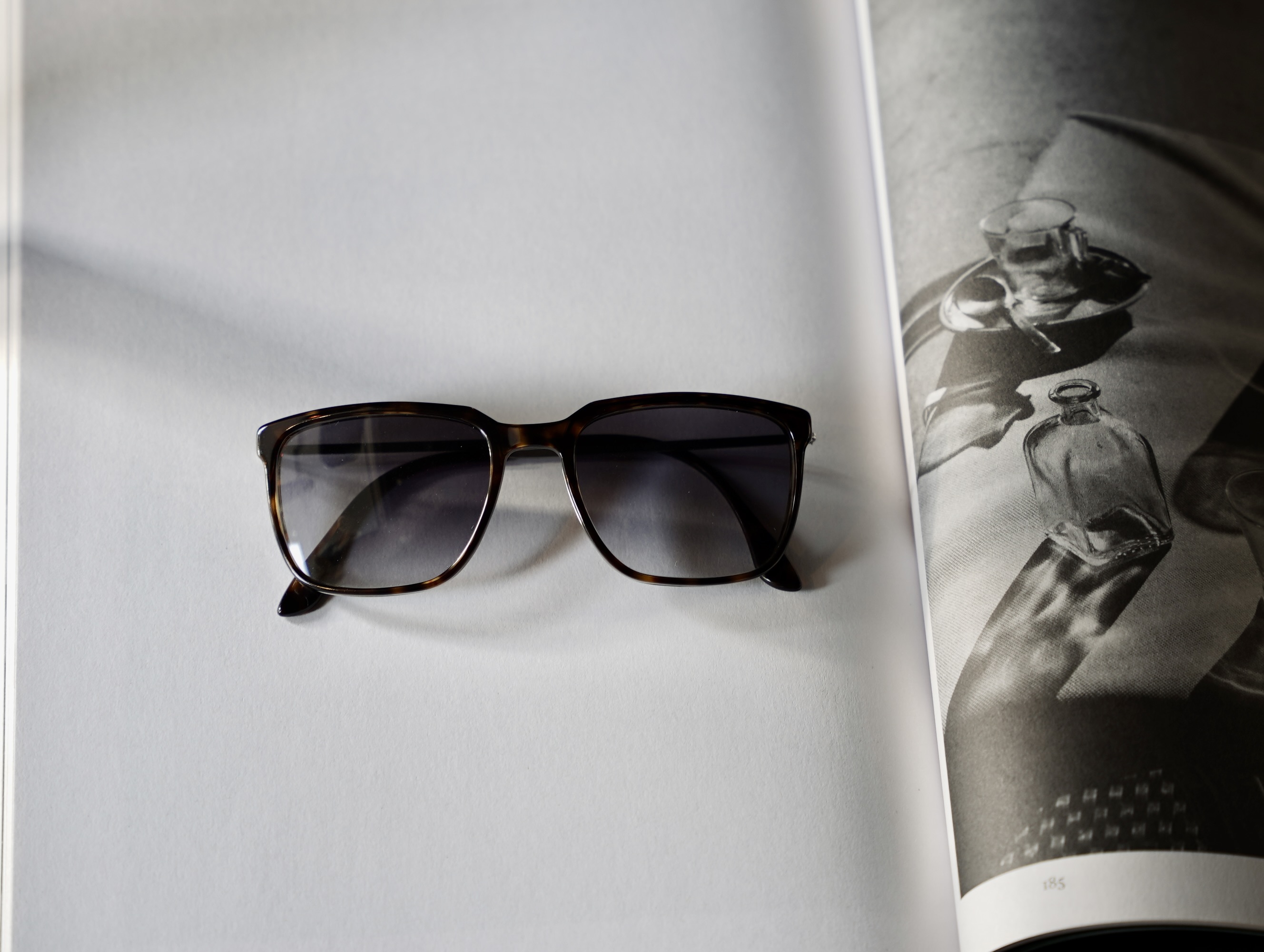 80’sを彷彿とさせるべっ甲柄フレームとグレーグラデーションレンズはgufo別注モデル。